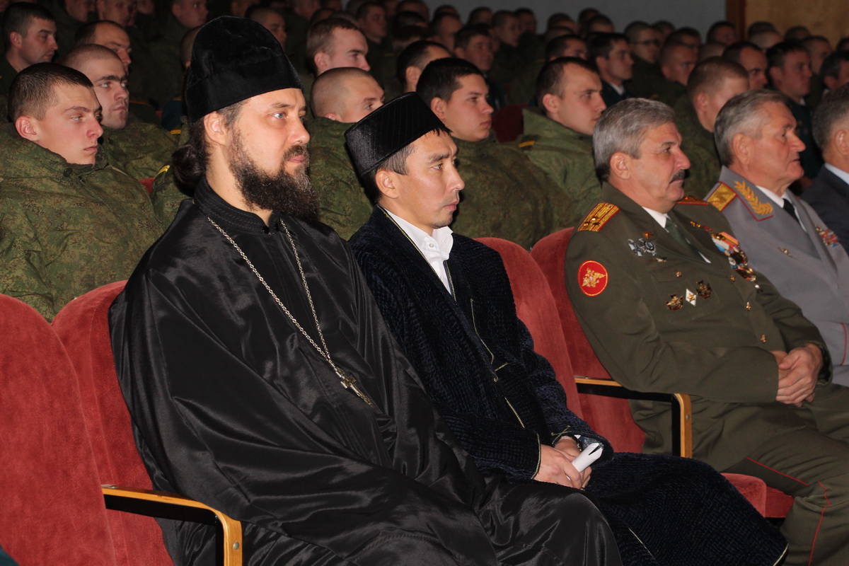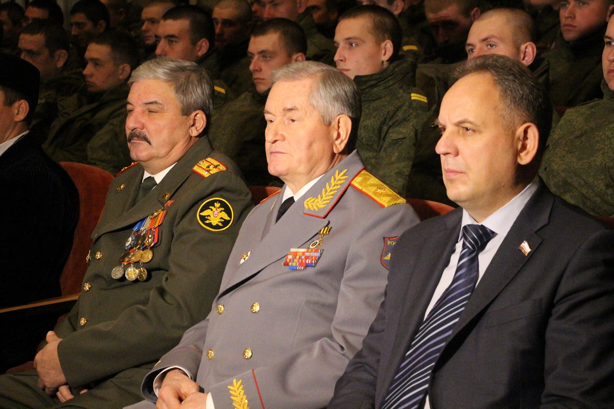 Участниками праздничного собрания стали действующие офицеры и ветераны, молодые военнослужащие, представители областного правительства, православный священник, имам Соборной мечети и др.