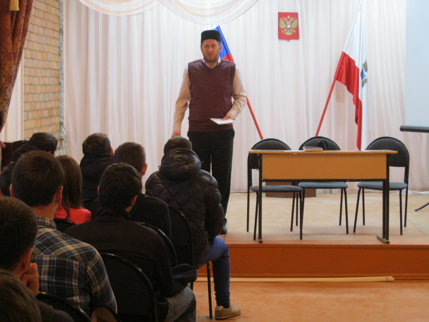 Стоит отметить, руководство образовательного учреждения старается регулярно приглашать представителей традиционных конфессий для участия в просветительских беседах и мероприятиях, направленных на патриотическое и толерантное воспитание молодежи.