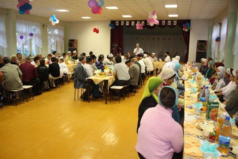 Имам-хатыб Калининска Усман-хазрат Тугушев признался, что обычно ифтар проводился в здании мечети, однако в последние годы прихожан стало так много, что все просто не умещаются в небольшом помещении. И это не смотря на то, что по сравнению с другими населенными пунктами области в Калининском районе мусульман не так уж много, всего три тысячи человек. В Рамадан-2009 коллективное разговение проводилось в столовой школы №2. За что гости и организаторы мероприятия благодарны администрации учебного заведения.