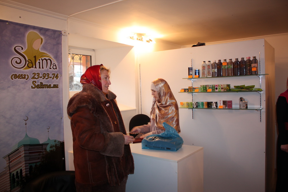Сегодня в Саратове состоялось торжественное открытие нового исламского магазина «Салима». Пропустить такое событие саратовские последовательницы Ислама не могли, а потому после Джума намаза дружно отправились за покупками. В ходе презентации магазина был проведен показ одежды. Мамы, пришедшие с детьми, могли оставить ребенка в специально отведенной для этого комнате, где малыш не скучал.