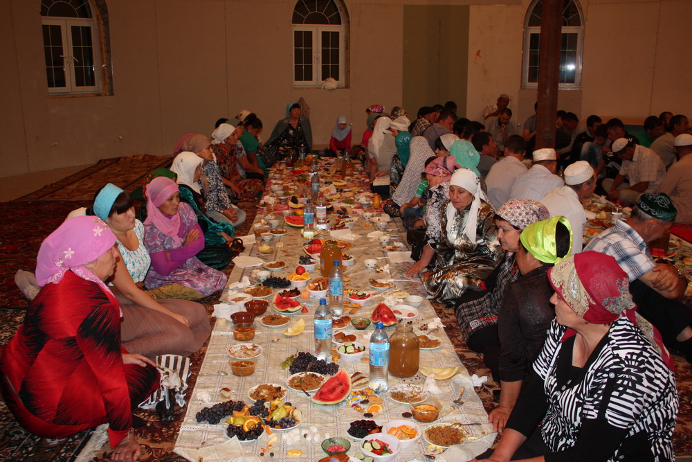 После совершения вечерней молитвы постящиеся отправились в местное кафе, где за праздничным дастарханом каждый смог отведать традиционные блюда мусульманских народов.