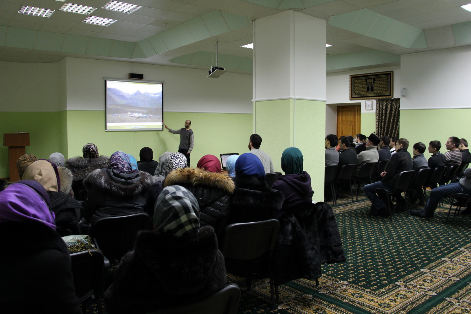 В ходе мероприятия Азнор-хаджи Хаджиев, совершивший в 2012 году восхождения на самые высокие вершины четырех континентов — Эверест (8848 м), Аконкагуа (6962 м), Килиманджаро (5895 м) и Эльбрус (5642 м) – рассказал саратовским мусульманам об особенностях путешествий и продемонстрировал им фотографии из экспедиций.