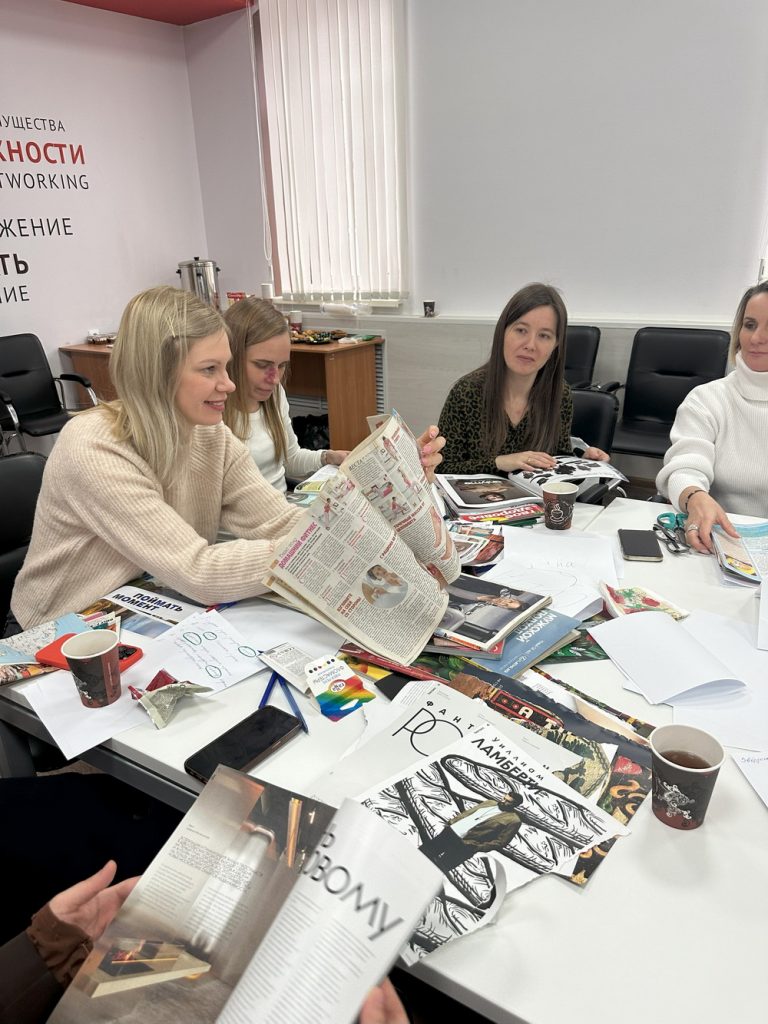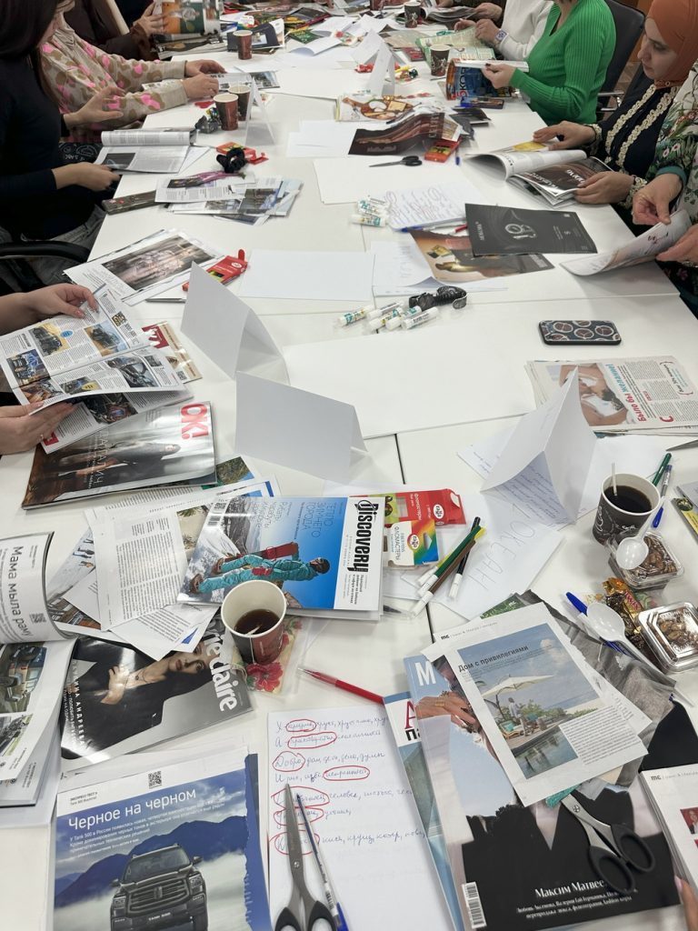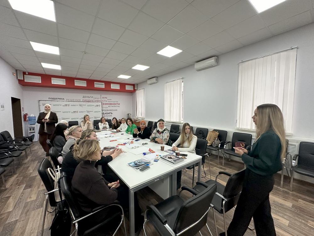 Под руководством мусульманки прошел тренинг для жен, вдов, матерей участников СВО. За три с половиной часа в ходе сеанса групповой терапии женщины получили профессиональную помощь психолога, привели в порядок свои мысли и чувства. При работе психолог использовала технику арт-терапии и различные другие методики. Так, например, участницы создавали из журнальных вырезок коллажи.