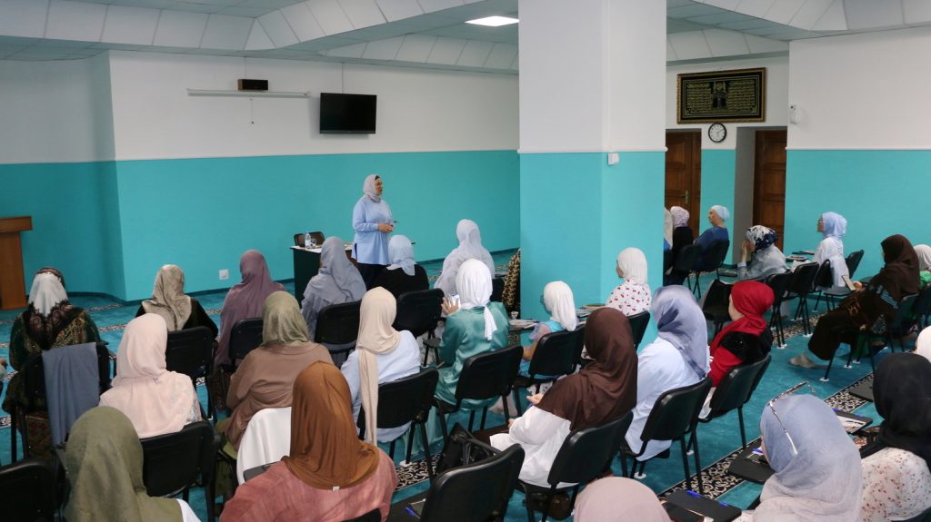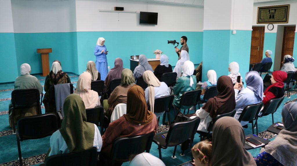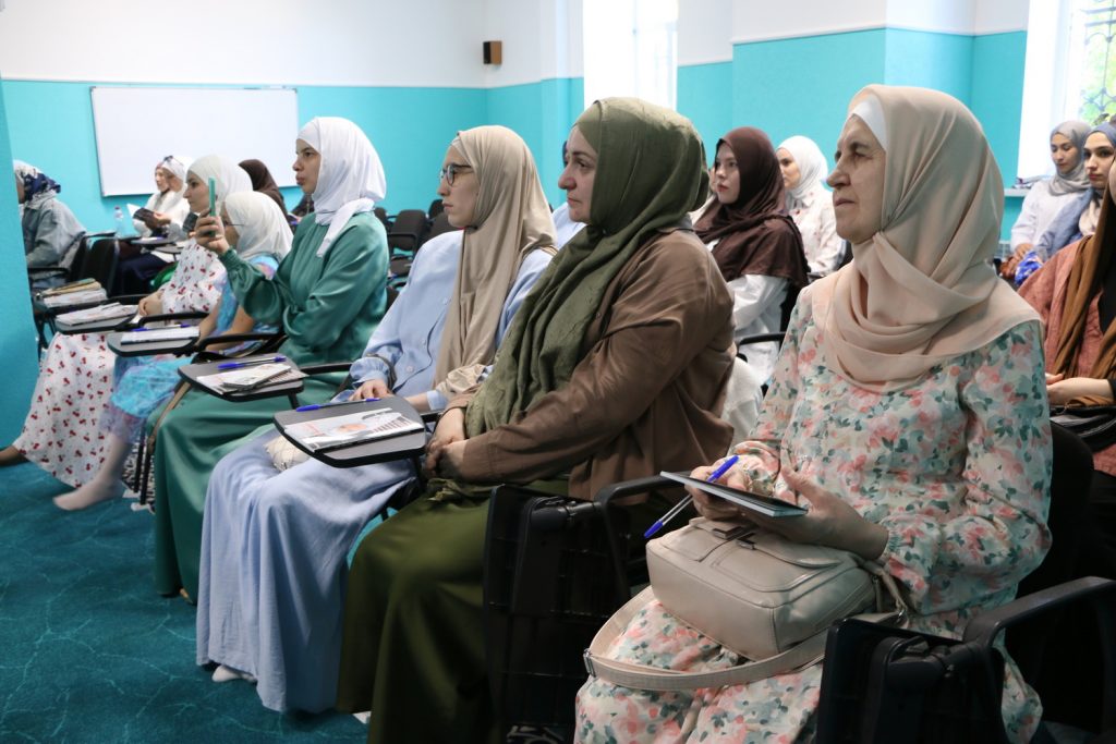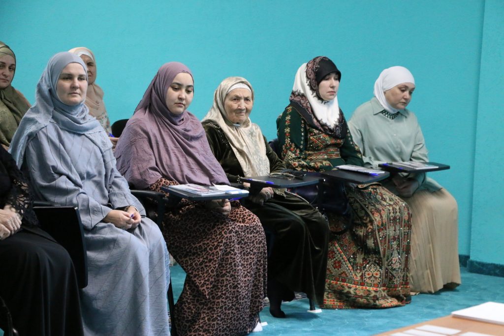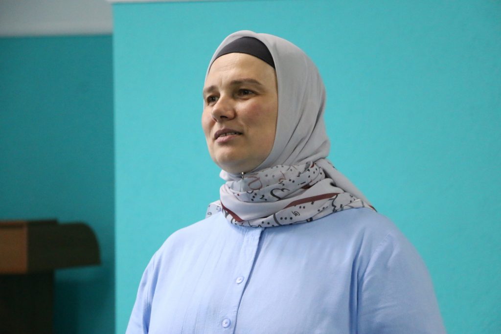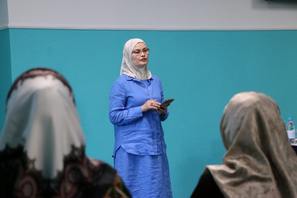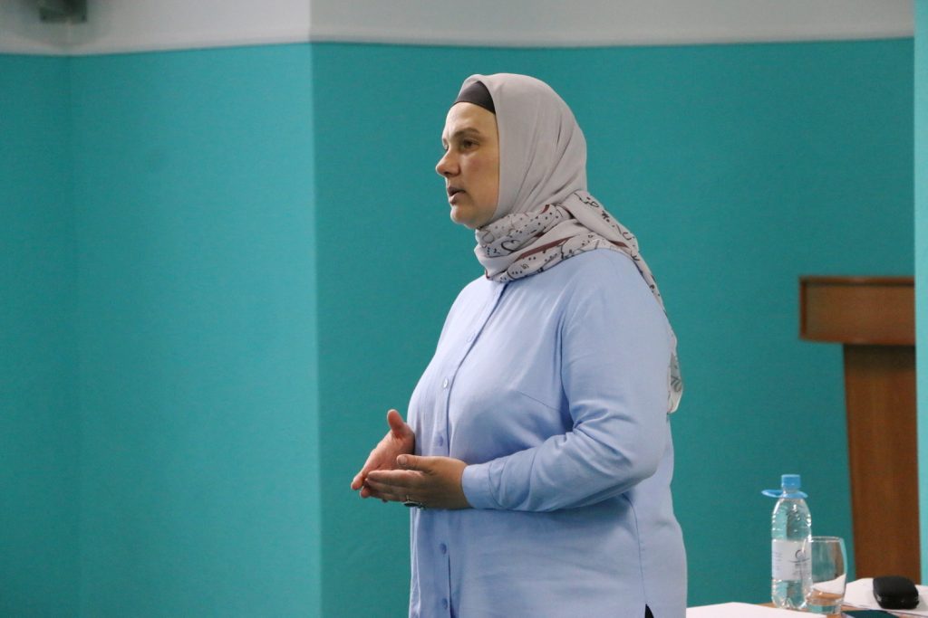 Затем руководитель женской организации «Родник» Хадиджа-ханум Бибарсова отметила актуальность темы и представила основного спикера Марьям Бариеву. Она является председателем Ассоциации психологической помощи мусульманам, руководителем международного женского клуба «Аиша», магистром психологии, кризисным психологом и теологом, автором различных книг.