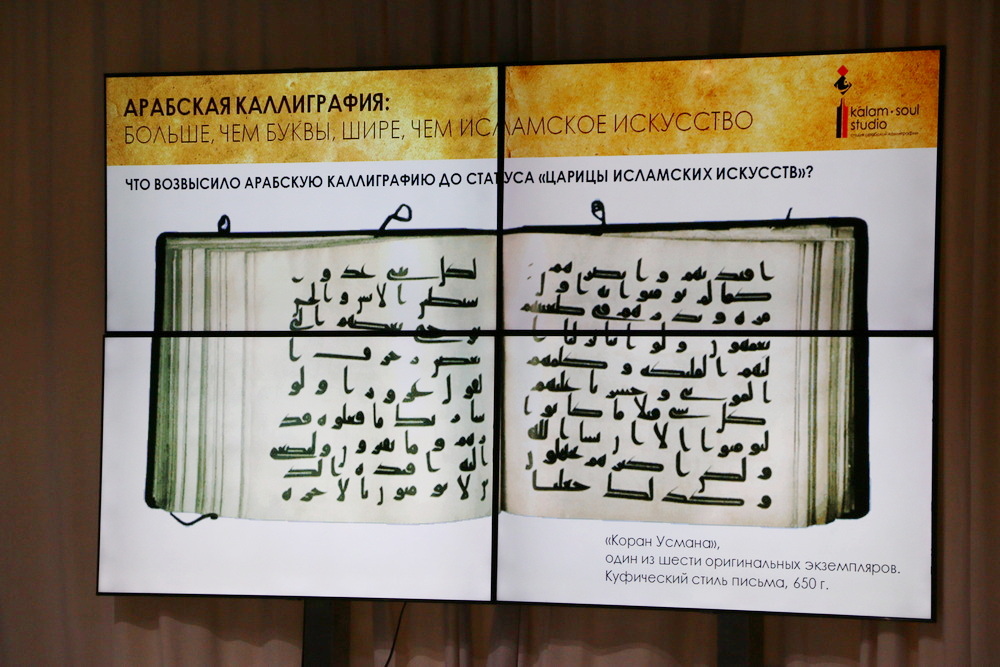 Также гость напомнил об истории развития отечественной каллиграфии на примере татарских шамаилей, рассказал о каллиграфах в СССР и современной России.