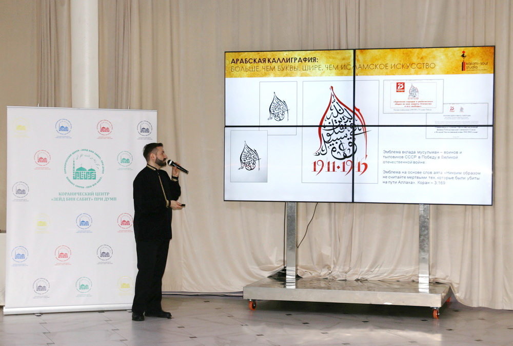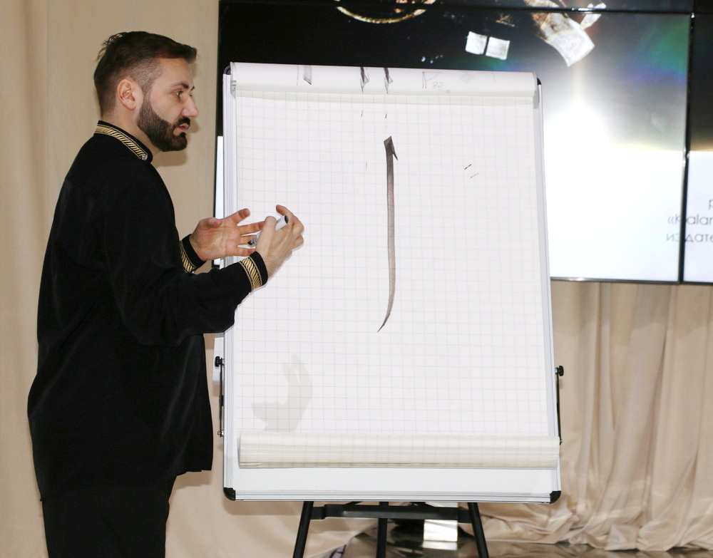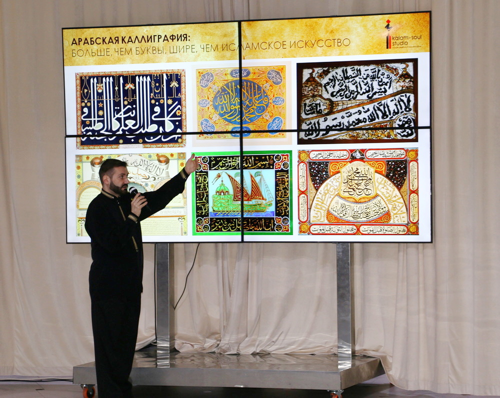 После этого специальный гость из Москвы, известный российский каллиграф-арабист, основатель студии «Kalam.Soul.Studio — Душа калама», иллюстратор издательского дома «Медина», преподаватель каллиграфии в Катарском центре арабского языка Сергей Сорочьев провел познавательную лекцию.