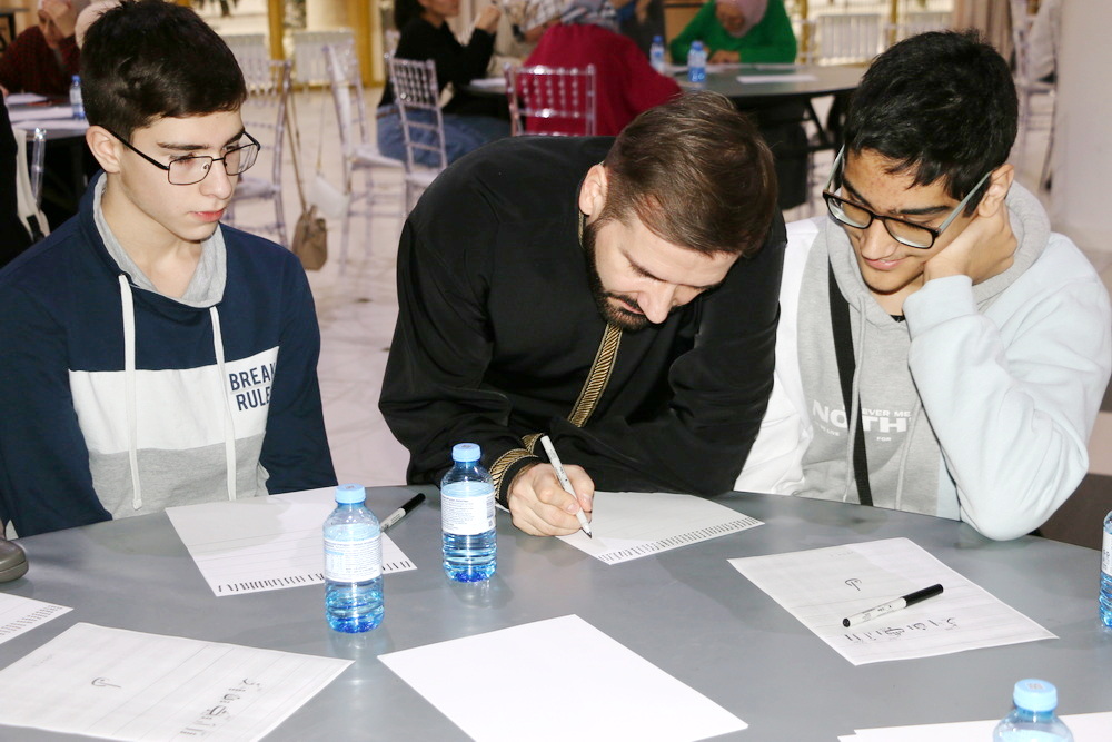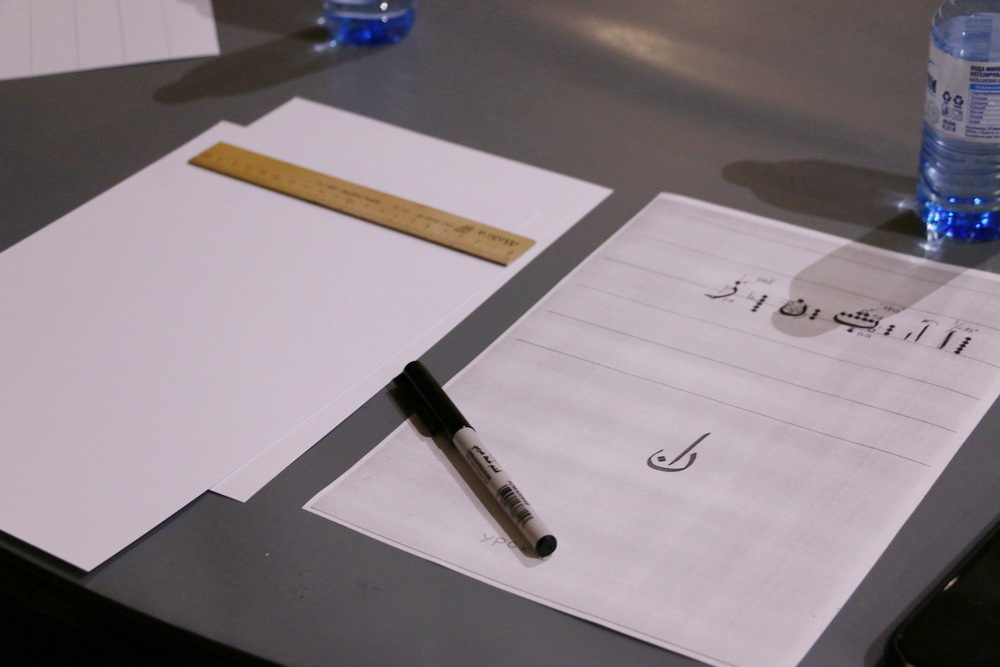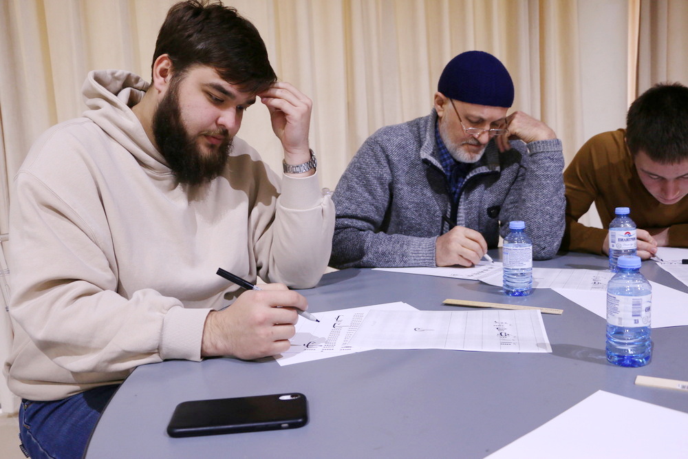 Во второй части мероприятия состоялся мастер-класс. Российский каллиграф показал, как правильно использовать инструменты и продемонстрировал написание базовых элементов и двух букв. Собравшиеся овладели нужной техникой и смогли познакомиться с созданием арабских каллиграмм.