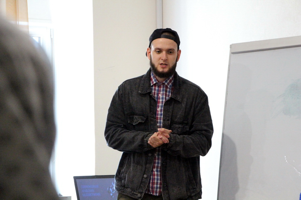 В ходе презентации он рассказал о себе, как решил изучать и заниматься арабской каллиграфией. Участники встречи узнали об истории этого вида искусства, какими инструментами можно создавать настоящие шедевры, а также где сегодня применяется арабская каллиграфия.