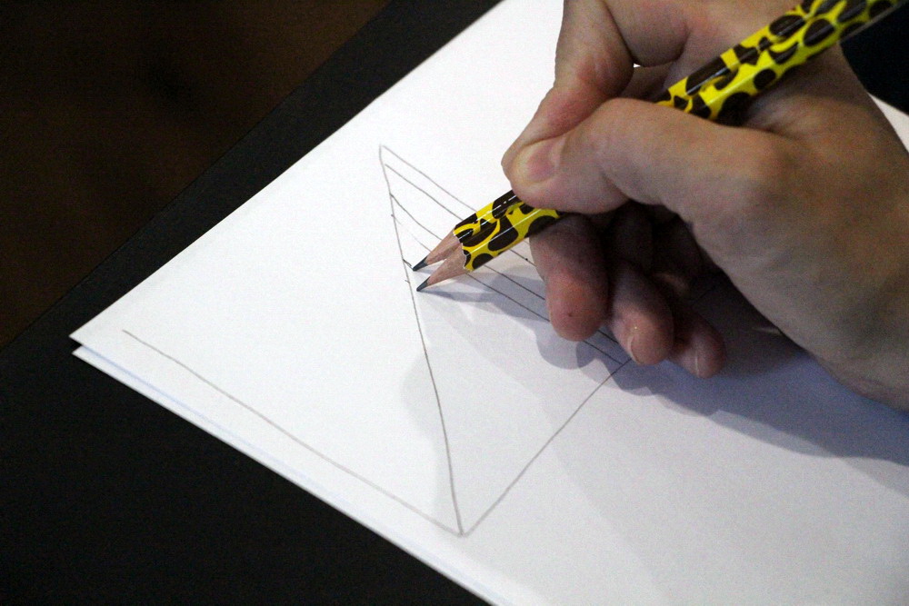 После презентации началась практическая часть мастер-класса. Алексей Горин показал несколько методик написания букв и предложил каждому попробовать нарисовать слово «Салям» (Мир) в виде птицы.