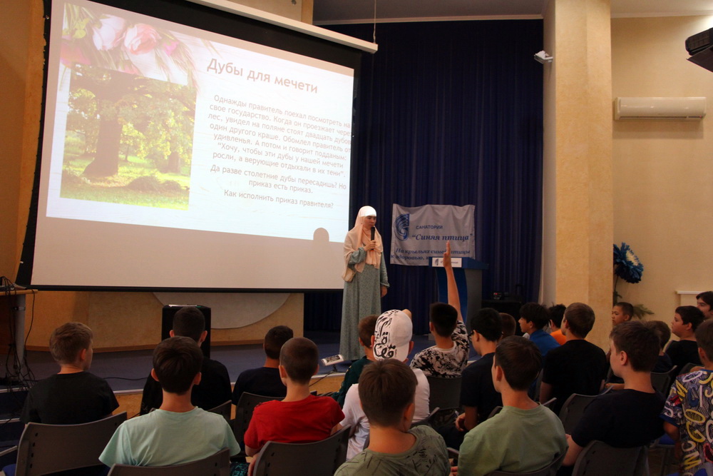 Программа Всероссийской смены «Муслим» настолько насыщенная, что скучать детям не приходится. На основании санаторно-курортных карт юные мусульмане проходят различные оздоровительные процедуры – массаж, ароматерапия, глинотерапия, ингаляции, физиопроцедуры и др. Ежедневно мальчики и девочки купаются в бассейне и играют в подвижные игры, посещают кружки, в ходе которых узнают основы своей религии, учатся читать на арабском и повторяют суры из Священного Корана.