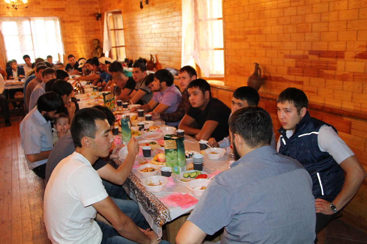 После приветствий почетных гостей в зале начались угощения вкуснейшим пловом, чаем и сладостями. Тем временем для молодежи была проведена познавательная викторина на знание обрядов Хаджа. За правильный ответ на вопросы ведущих участники собрания получали призы.