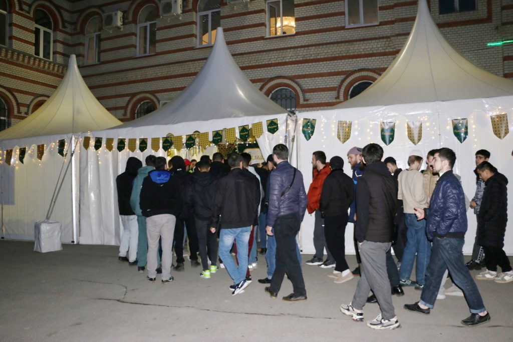 Ежедневно коллективные ифтары в специальном шатре на территории Саратовской Соборной мечети устраиваются на 170 человек. В основном это студенты и нуждающиеся люди.