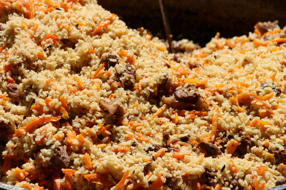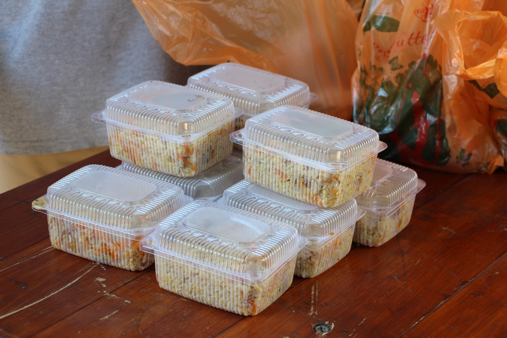 В каждый ланч-набор входил ароматный плов, овощи, фрукты, хлеб и чай.