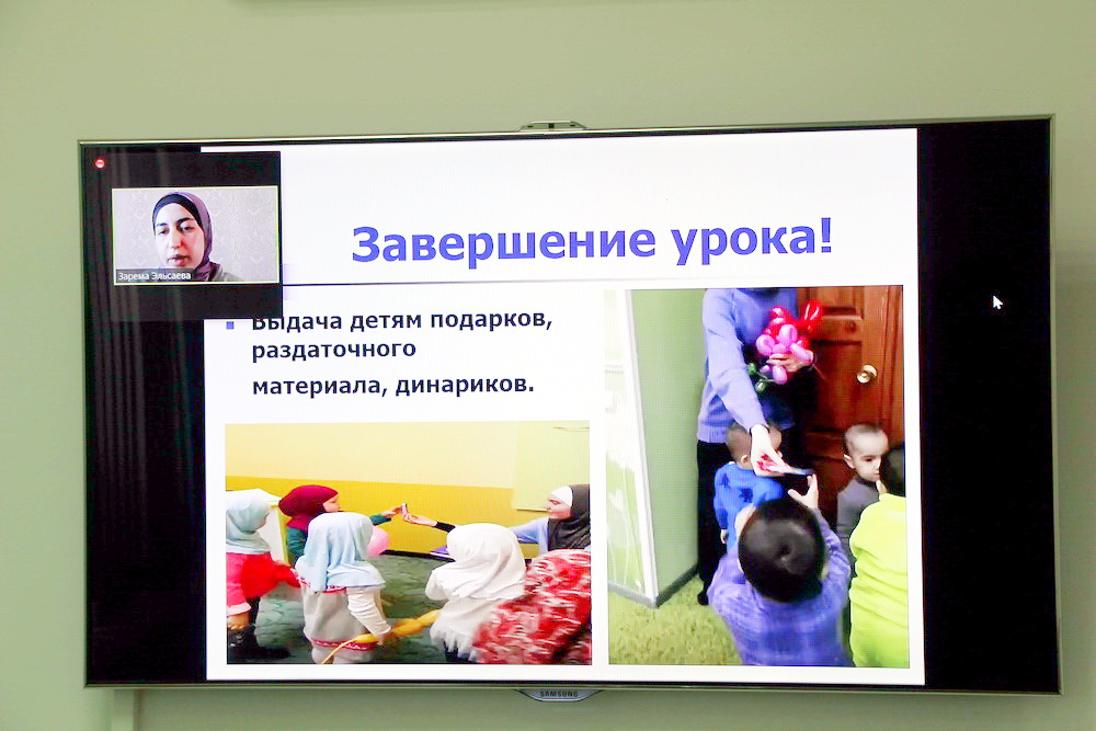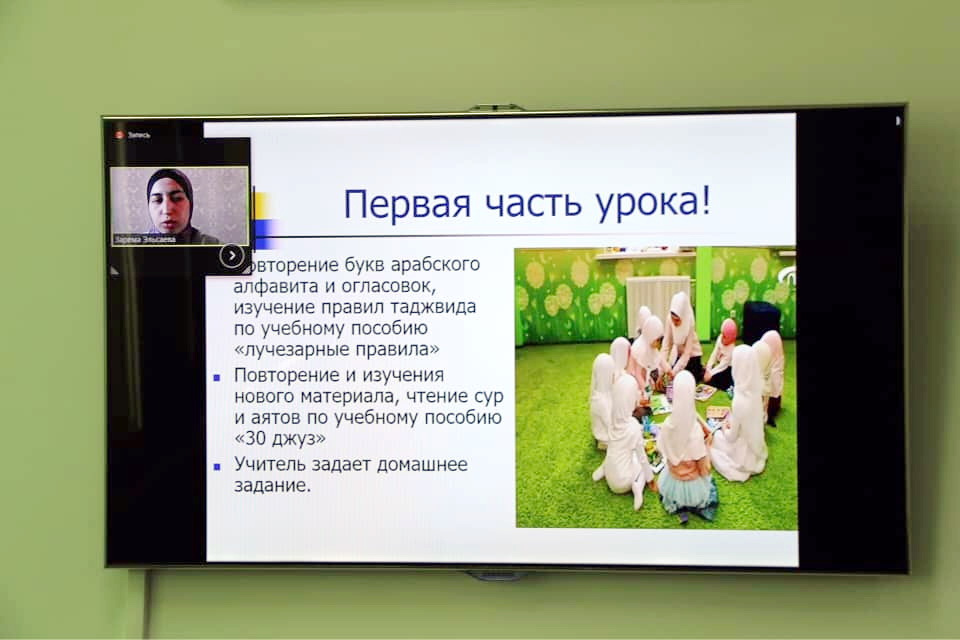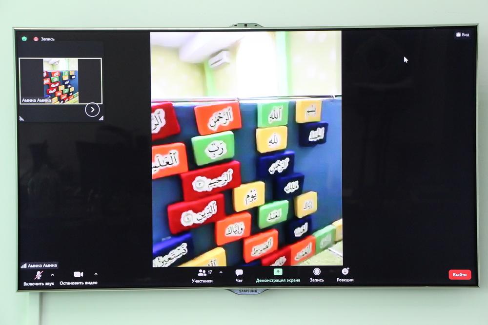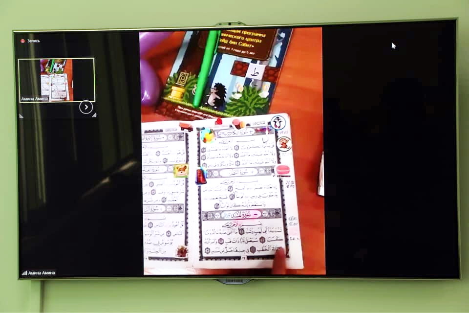 В рамках онлайн-презентации преподаватели центра «Зейд бин Сабит» поделились методиками преподавания для детей разного возраста – от года до 5 лет. Их главная цель — привить детям любовь к чтению Корана и заучиванию сур с самого раннего возраста. По словам преподавателей центра, для этого используется все, что помогает создать радостную атмосферу на занятии (кубики, шарики, игрушки, сладости и др.), а сами уроки проходят в игровой увлекательной форме.