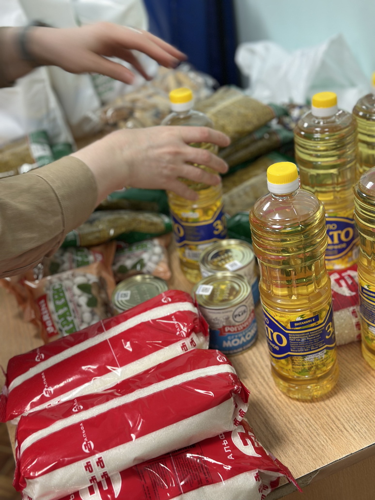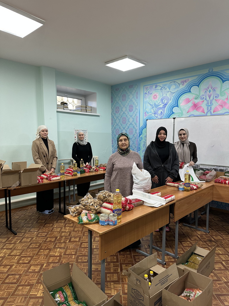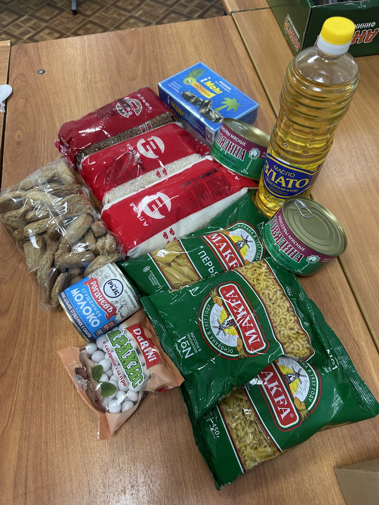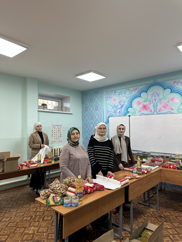 В каждый пакет, приготовленный волонтерами, упакованы макароны, рис, гречка, финики, тушенка, подсолнечное масло, сахар, сгущенка. В ближайшее время все наборы будут доставлены в семьи верующих.