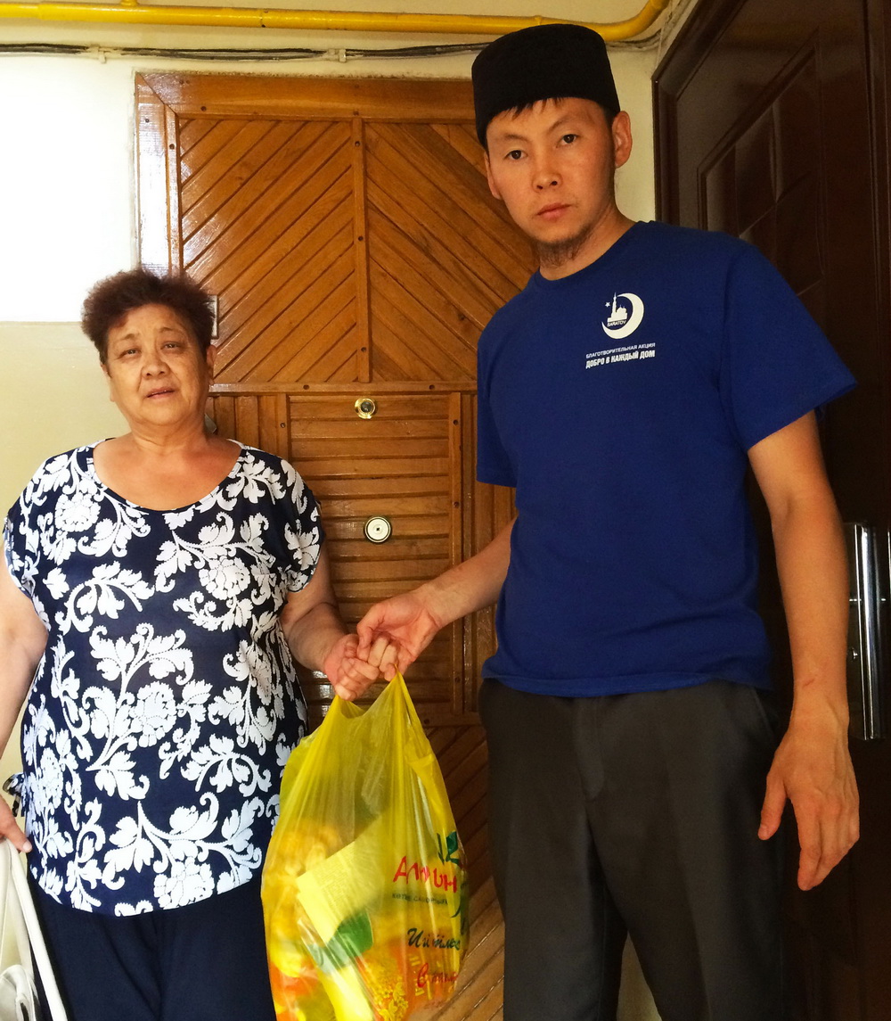 На протяжении месяца прихожане со всего района делали пожертвования. В последний день Рамадана на собранные средства активисты мусульманской общины провели акцию «Добро в каждый дом». 4 июля имам мечети Хамза-хазрат Бакиров вместе со своими помощниками, студентами Краснокутского лётного училища гражданской авиации, отправились на большую закупку продуктов. Для такого особого дела и внешний вид должен быть соответствующим — все участники акции были одеты в одинаковые яркие синие майки с надписью «Краснокутская соборная мечеть».