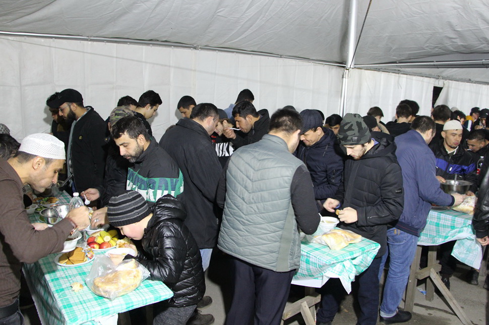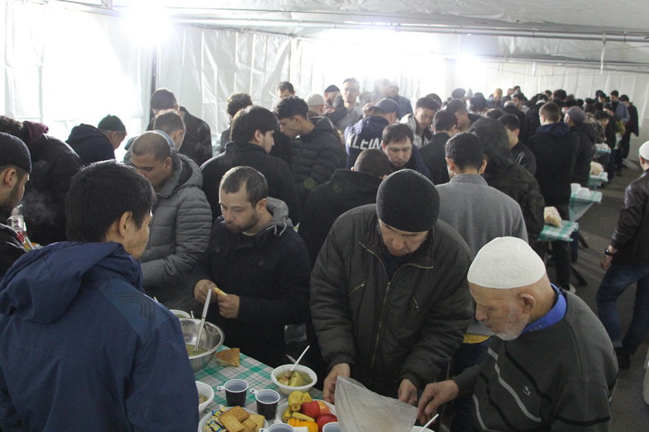 На коллективный ифтар приходят нуждающиеся люди и студенты. Перед заходом солнца имамы читают лекции о ценностях Рамадана и уразы, наставляют постящихся совершать еще больше ибадата и благих поступков. После Магриб-намаза все направляются в шатер, где их ждут горячие блюда (плов, шурпа или гречка с мясом), овощи, фрукты, чай и сладости.