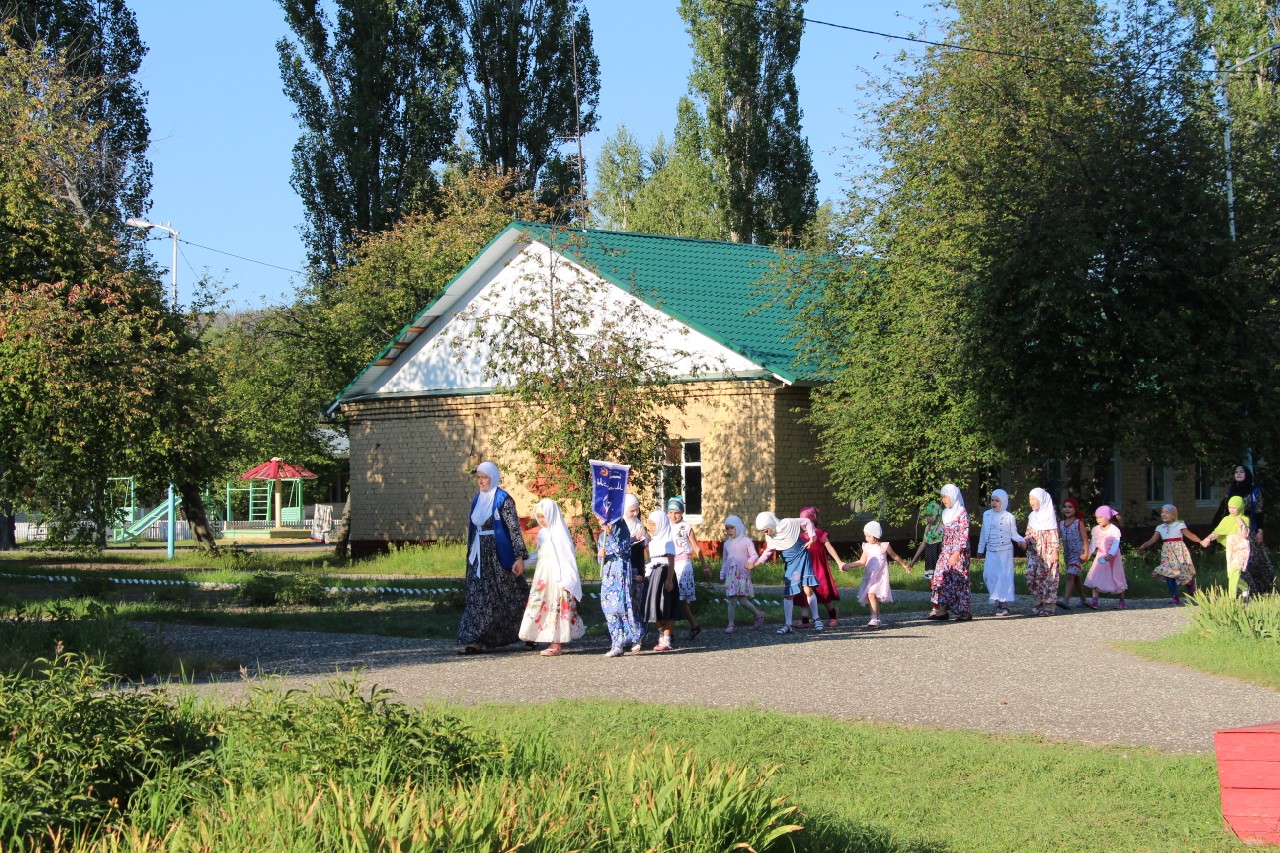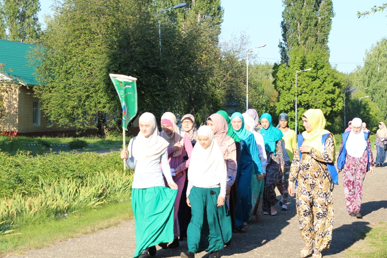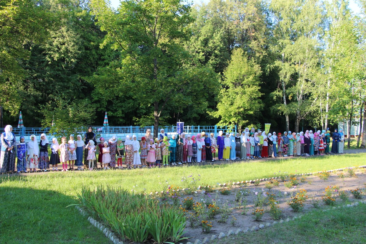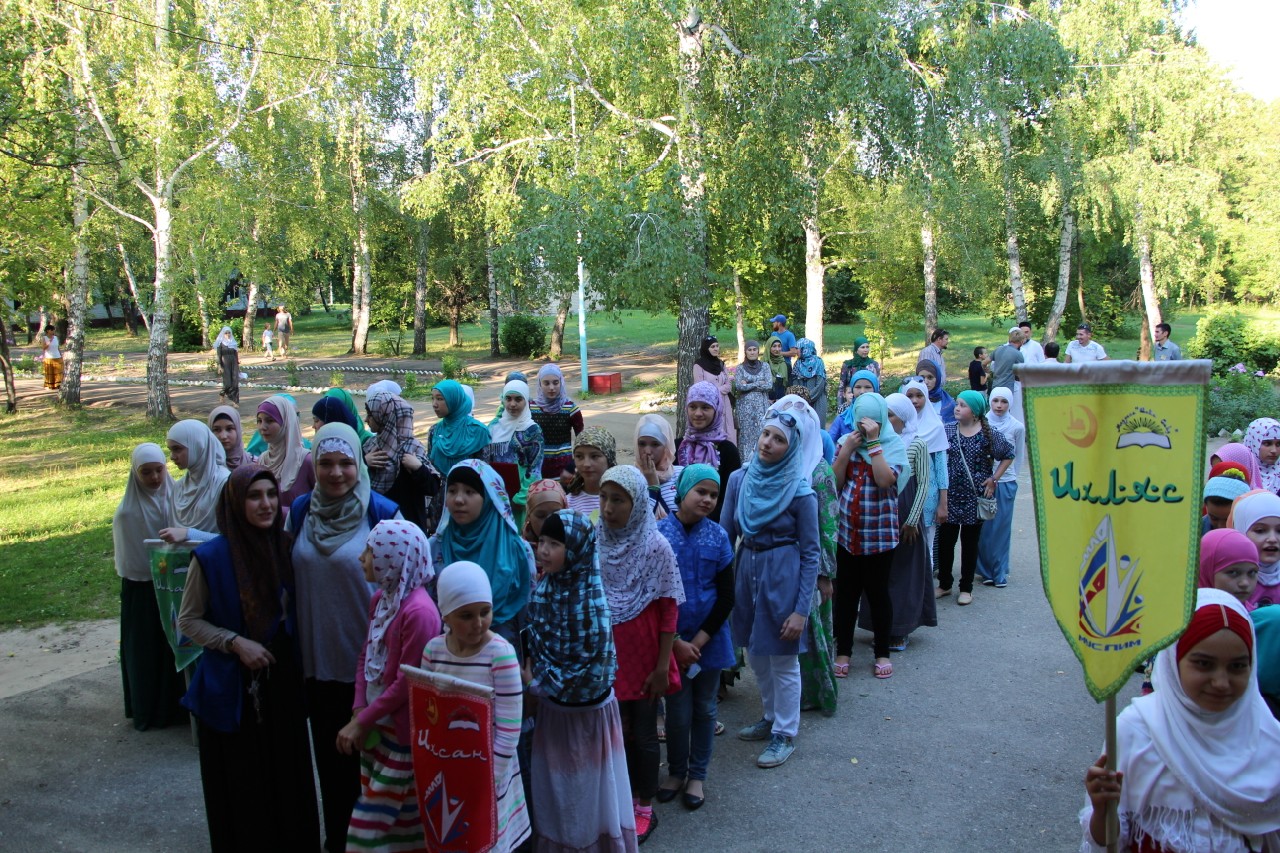 Отряды от мала до велика дружно выстроились в стройные ряды. Все как один представили свои команды и выкрикивали свои девизы: «Ислам», «Ихляс», «Зам-Зам», «Иман», «Ихсан».