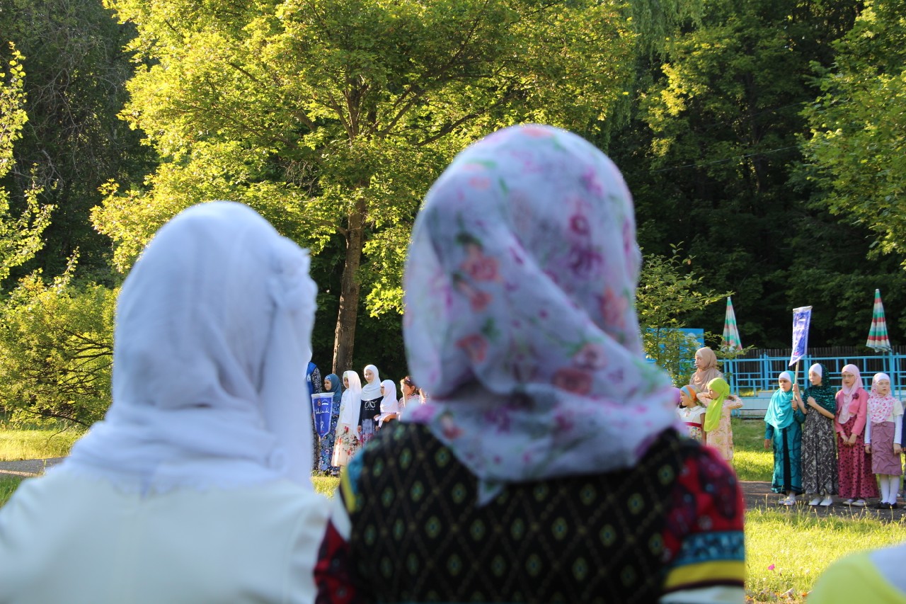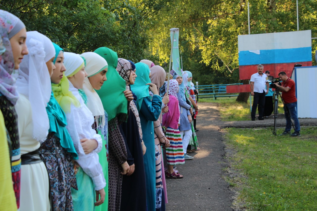 IMG_8050«Кто шагает дружно в ряд? Это женский наш отряд!». Пестрые платки, летние платьица – в ДОЛ «Зеркальный» Базарно-Карабулакского района прошло торжественное открытие женской смены Всероссийского лагеря «Муслим».