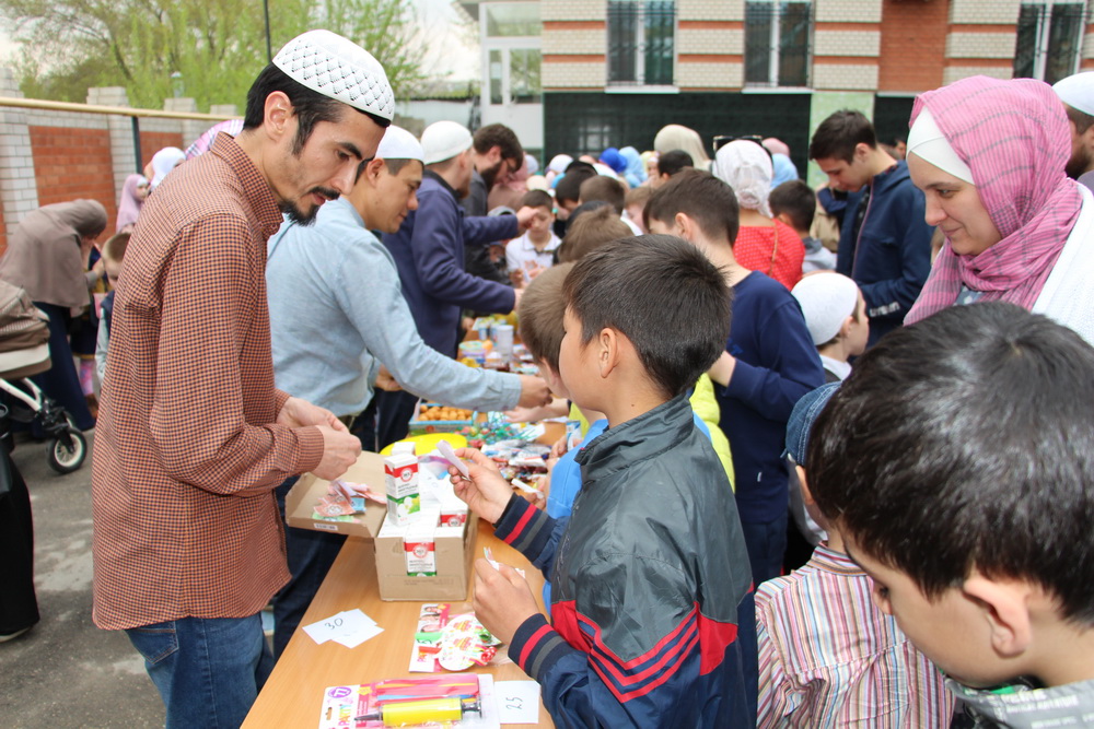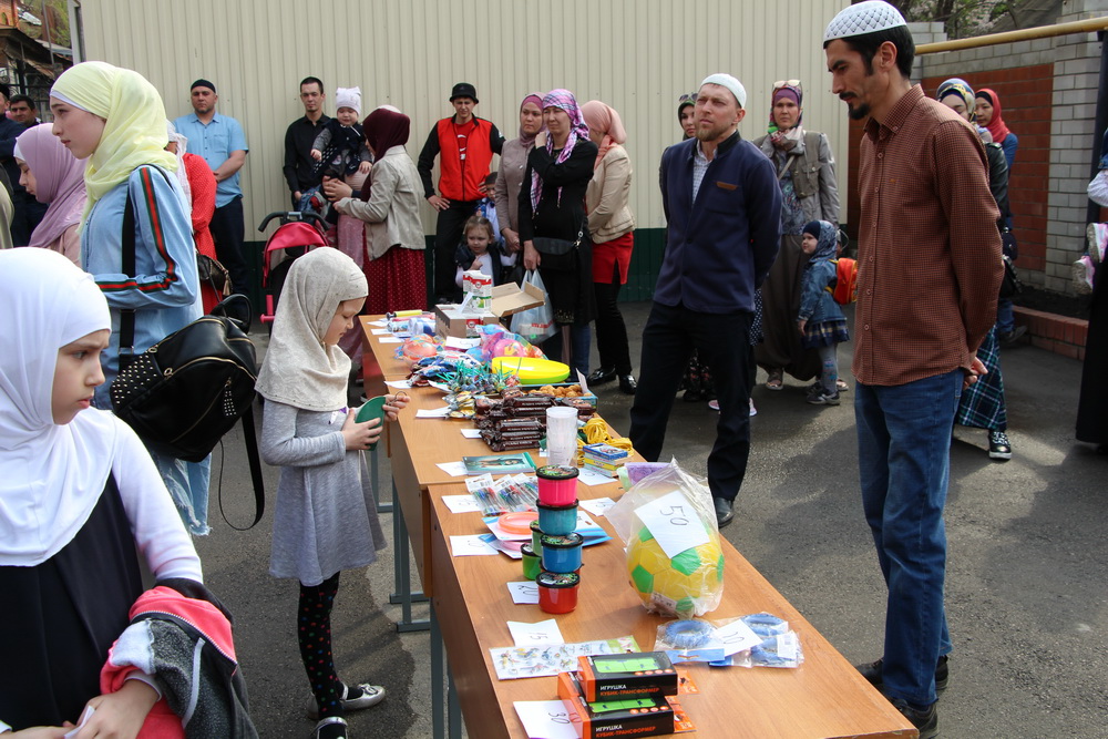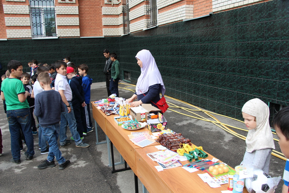 После открылась ярмарка призов и подарков. Ребята с нетерпением ожидали возможности обменять свои «мактабики» на игрушки, канцтовары и сладости. Преодолевая длинные очереди, у юных мусульман разбегались глаза, они терялись что выбрать, а после все же получали то, что действительно им нужно. Как уточнили преподаватели школы, «мактабики» — это так называемая «валюта», которой поощряют детей за старания в обучении.