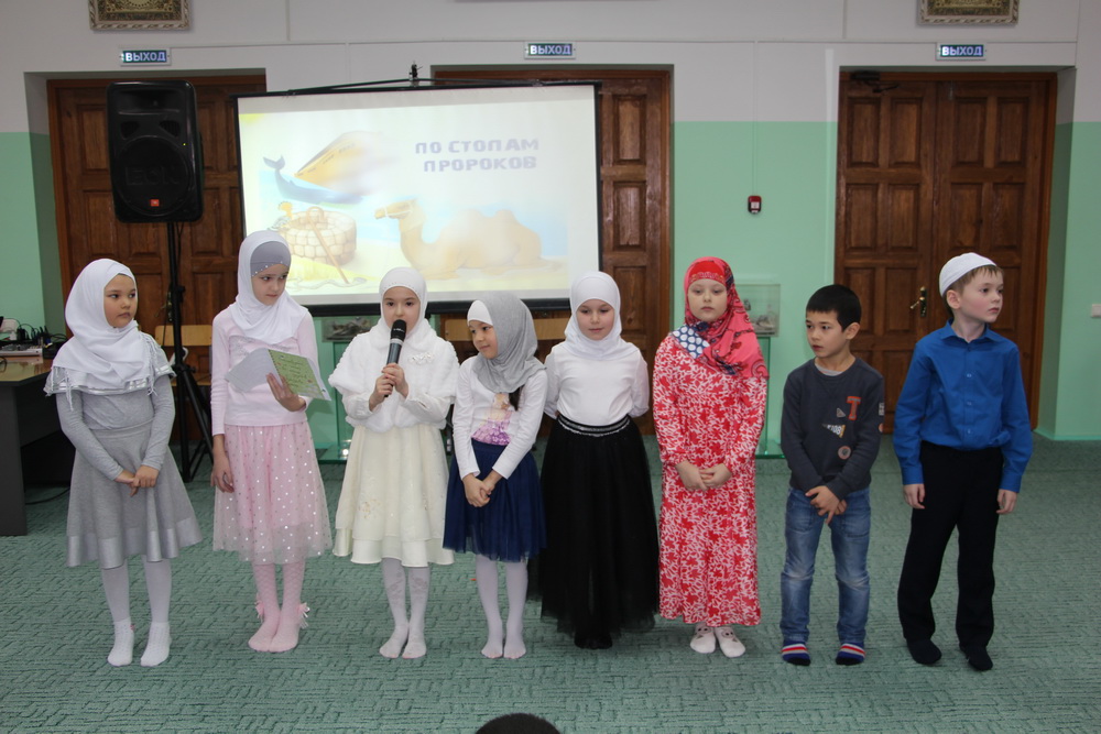 В начале мероприятия прозвучали аяты Священного Корана, которые посвящены пророкам и посланникам Всевышнего Аллаха. После чего внимание собравшихся привлекли юные воспитанники «Мактаба», которые исполнили тематический нашид.