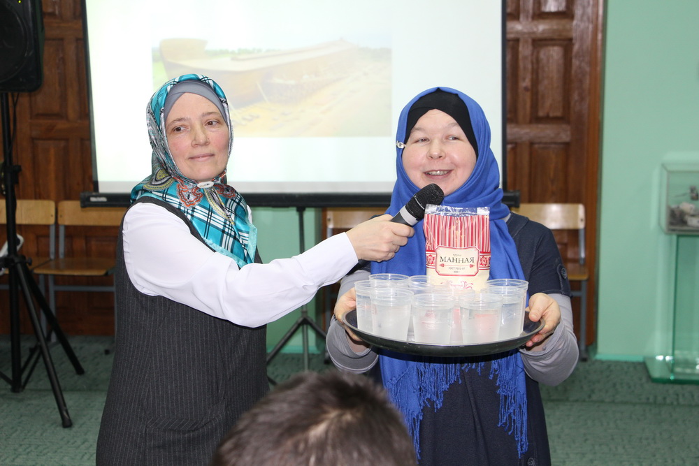 Программа мероприятия включала в себя и необычную викторину с родителями. Педагоги демонстрировали им некоторые предметы, связанные с жизнью какого-либо пророка. Взрослым необходимо было проявить смекалку и догадаться о каком эпизоде истории идёт речь. За правильный ответ они получали призы.