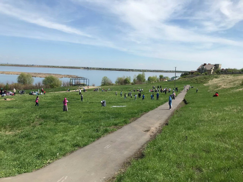 На берегу Волги возле мечети Усть-Курдюма собрались преподаватели вместе с десятками детей и их родителями.
