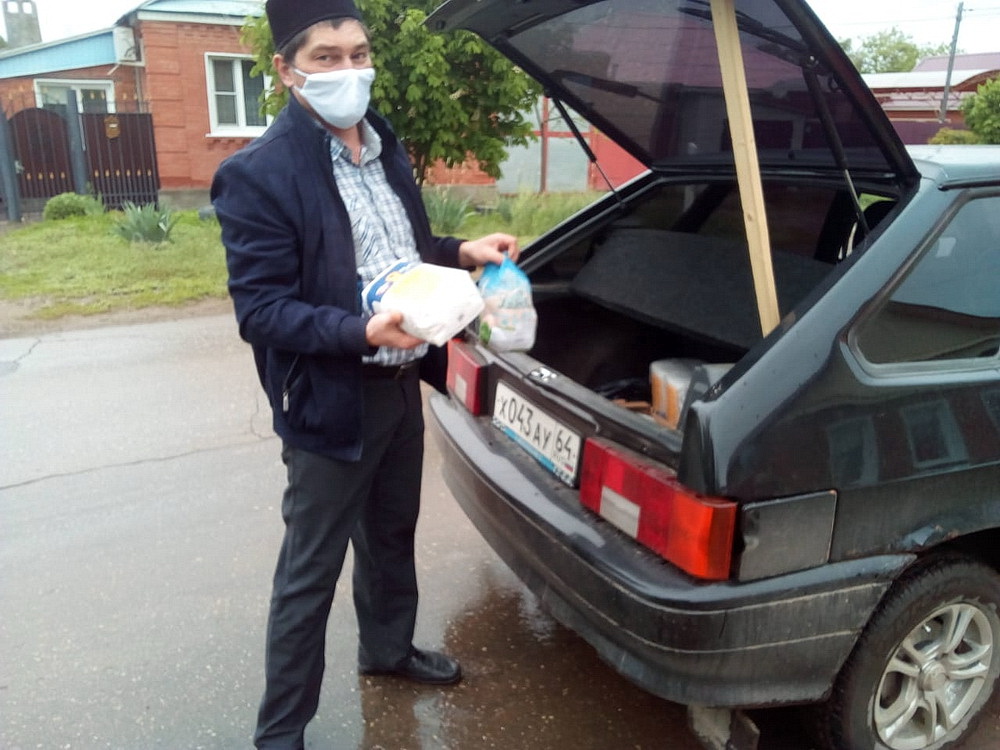 С первых дней Благословенного месяца мусульмане начали привозить в Соборную мечеть г.Маркса муку, сахар, крупы, подсолнечное масло, мясо курицы, консервы и другие продукты. Имам вместе с активистами общины формирует продовольственные наборы и развозит их по адресам одиноко проживающих пенсионеров, малоимущих, многодетных семей.