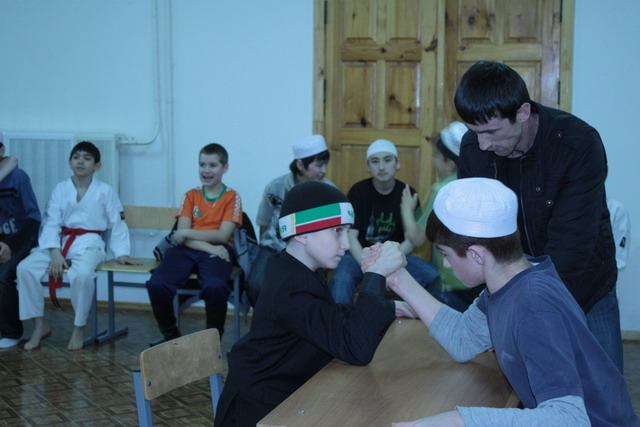 После показательных выступлений состоялись спортивные соревнования, в которых приняли участие все желающие. Соревнования включили в себя перетягивание каната, вольную борьбу, армрестлинг и спортивную гимнастику. Девочки состязались в умении вращать обручи, скакать на прыгалке, нанизывать бусинки на нитку, а потом и борьбе на руках. Победителей и побежденных объединил сладкий стол и чаепитие, последовавшее за спортивным действом. Учителю начальных классов медресе «Шейх Саид» Альфие Кармеевой осталось лишь пожелать своим воспитанникам новых успехов в учебе и спорте.
