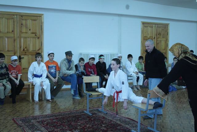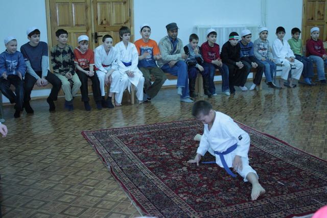 5 апреля в саратовском Исламском центре прошел детский спортивный праздник. Он был приурочен к спортивным победам ребят, обучающихся в детской группе медресе «Шейх Саид». Аятами Священного Корана и небольшой приветственной речью к собравшимся обратился имам-хатыб Фаниль-хазрат Бибарсов. Он напомнил хадис Пророка Мухаммада(мир ему!), о том, что «сильный мусульманин – лучше слабого», и передал эстафету маленьким чемпионам. Победители недавно прошедшего первенства области по каратэ-до пятилетний Расул Курмакаев (тренер Ахмедов И.), Улугбек Мирзаев (тренер Мажидов С.) и обладатель фиолетового пояса Мансур Янгульбиев (тренер Мирзоев Р.) выступили с показательными элементами восточного единоборства. Посмотреть на юных спортсменов и поприветствовать их собрались преподаватели и ученики медресе, родители и прихожане саратовской мечети. Каратисты продемонстрировали гостям ката, умение садиться на шпагат, стойки на голове и многое другое. А Ахильгов Микаэль (тренер Мажидов С.) приятно удивил «Ван Даммовским» приемом – он сел на поперечный шпагат на двух стульях.