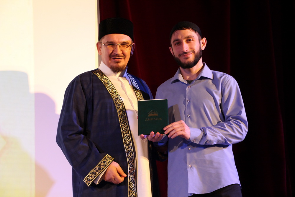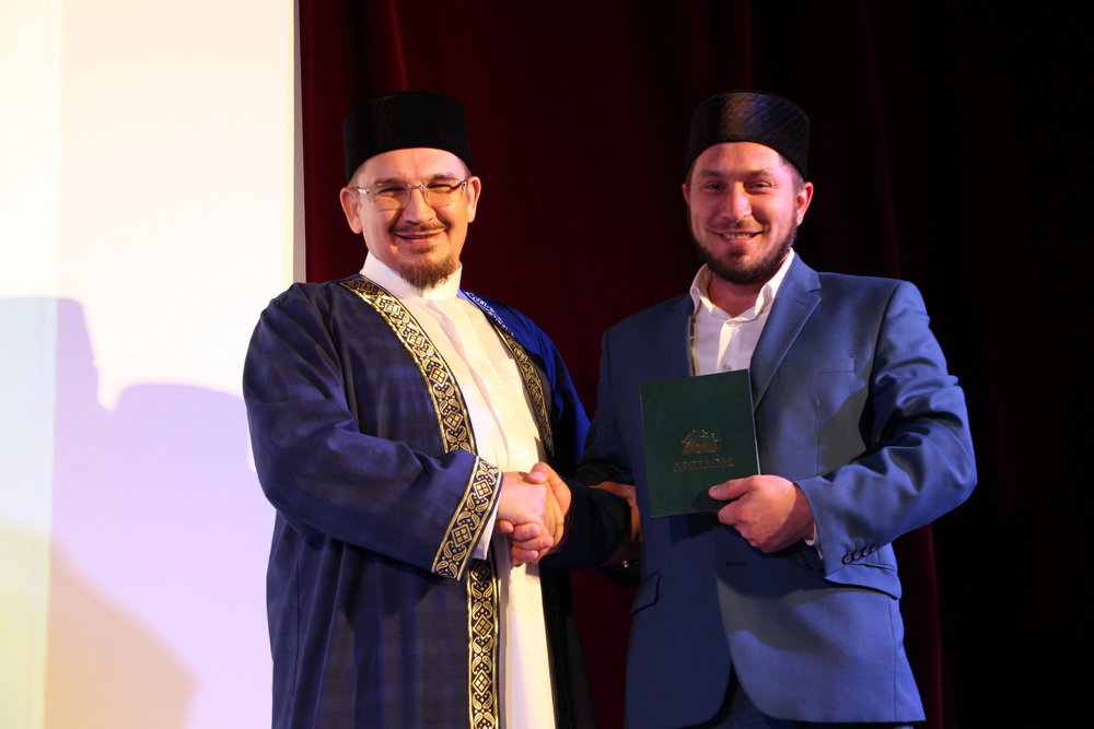 Стоит отметить, приятным завершением программы вечера стало вручение дипломов выпускникам 2017 года. В торжественной обстановке обладателями свидетельств об окончании учебы с присвоением им квалификации «имам-хатыб, преподаватель исламских дисциплин» по специальности «Исламское богослужение» стали 14 человек, отучившиеся на заочном и вечернем отделениях.