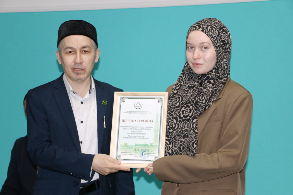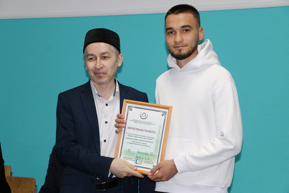 Отмечены были и заслуги учащихся. Те, кто принимал активное участие в жизни мусульманской общины, организации учебной деятельности и волонтерстве, удостоились почетных грамот. Всего памятные документы получили 15 учеников.