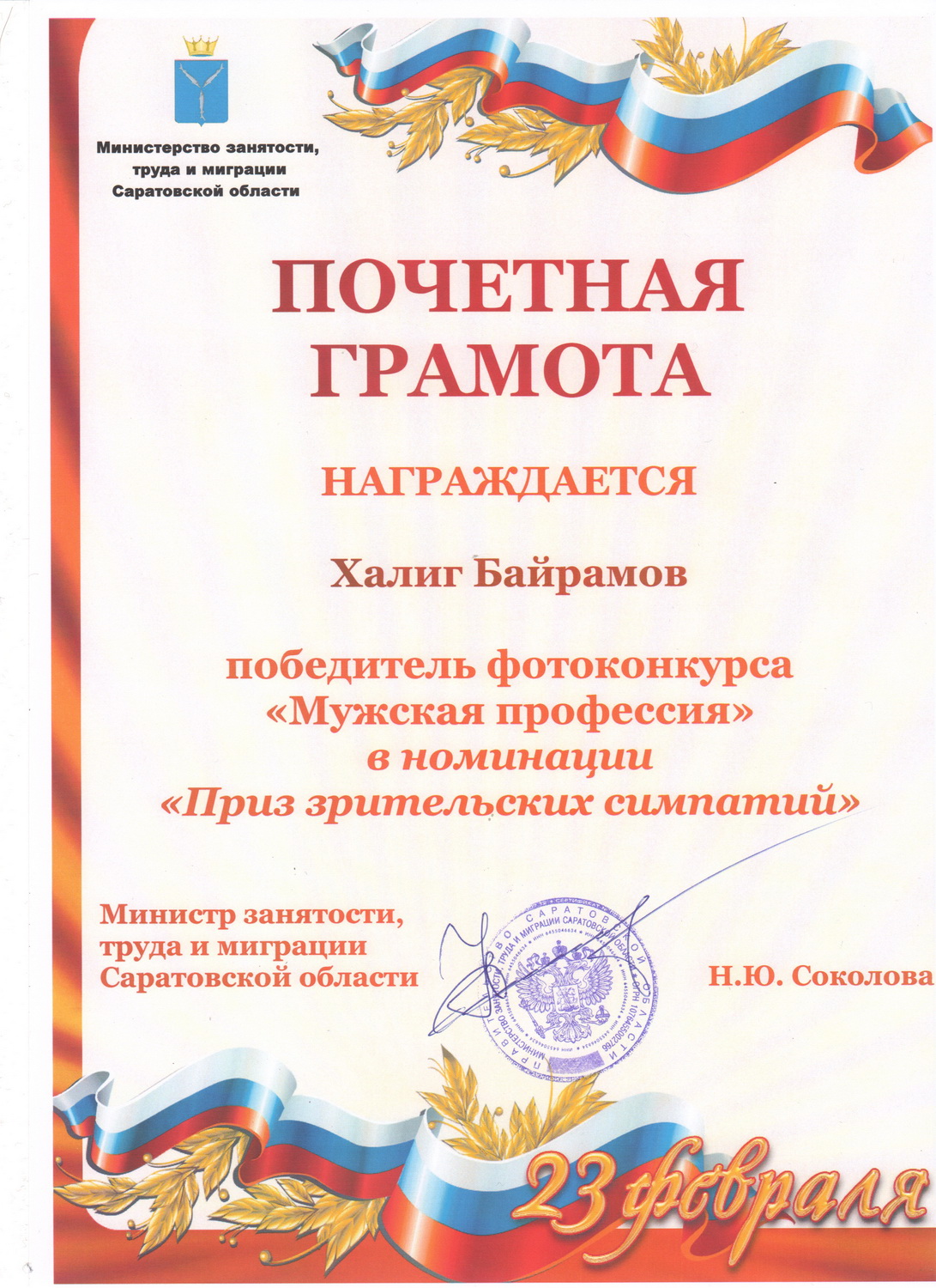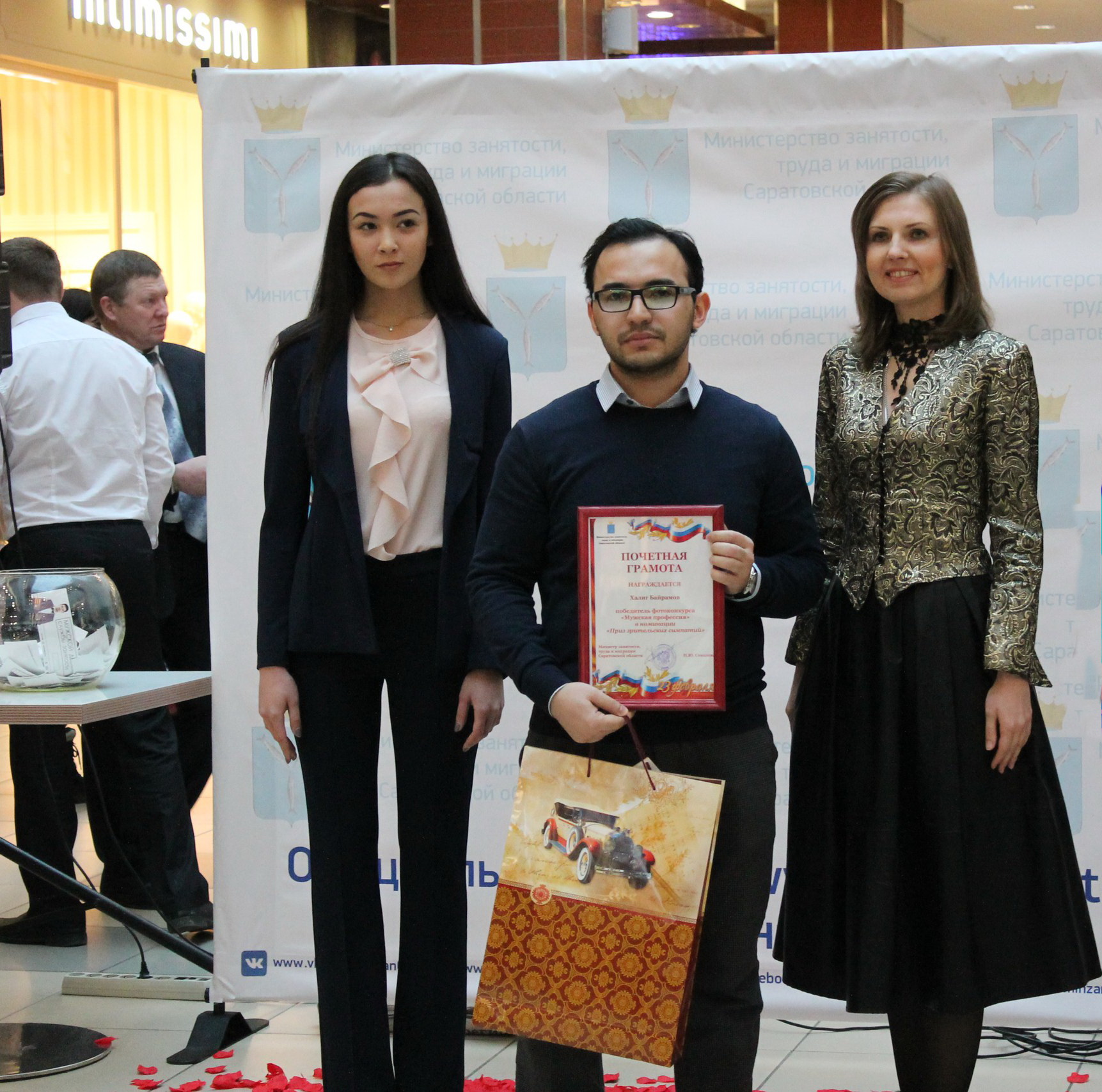 Ему была вручена грамота от министра занятости, труда и миграции — Натальи Соколовой, а также подарок от организаторов.