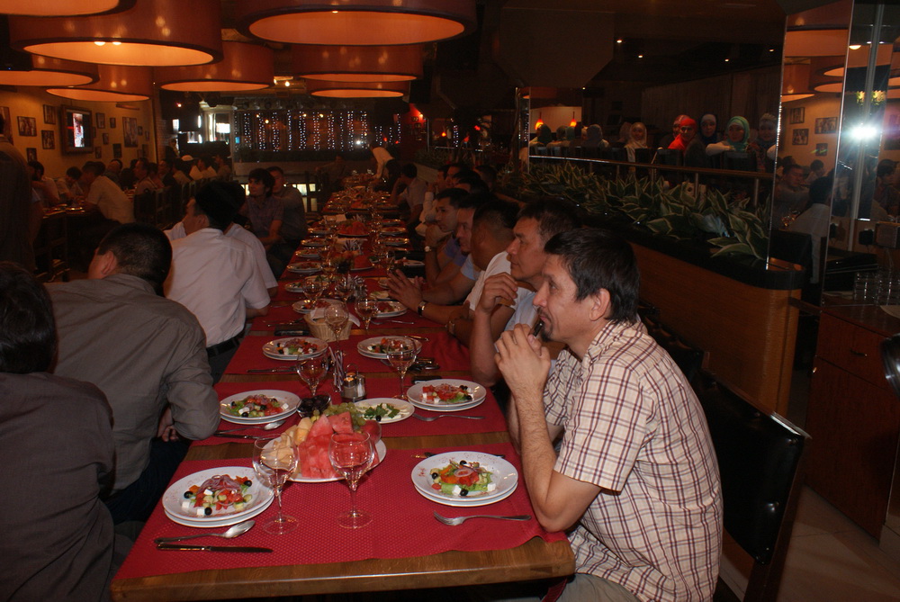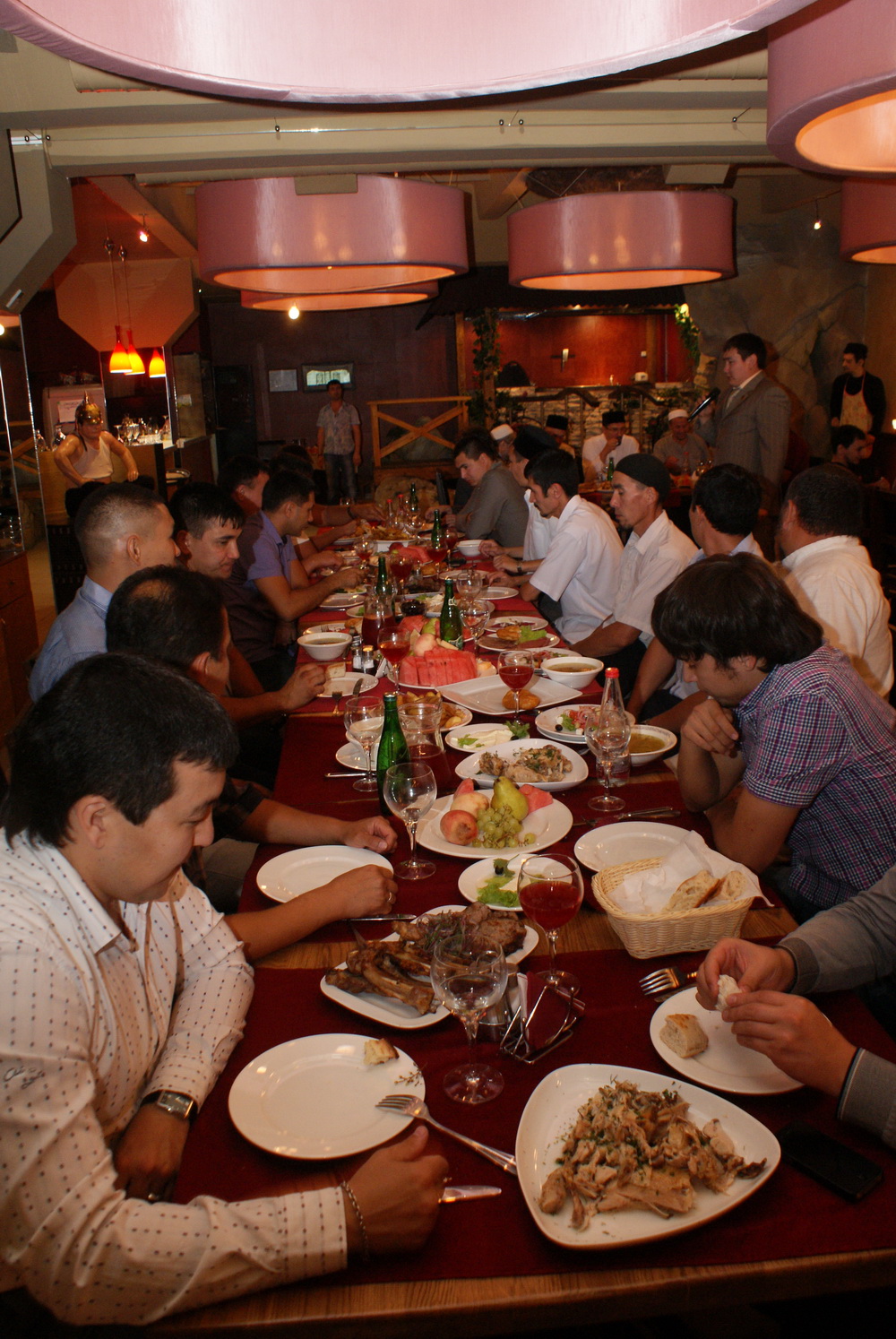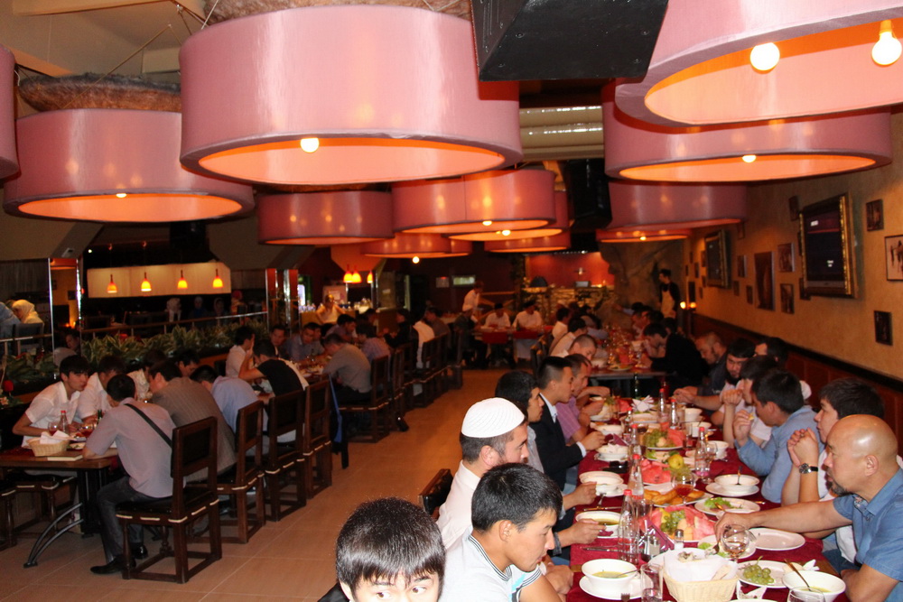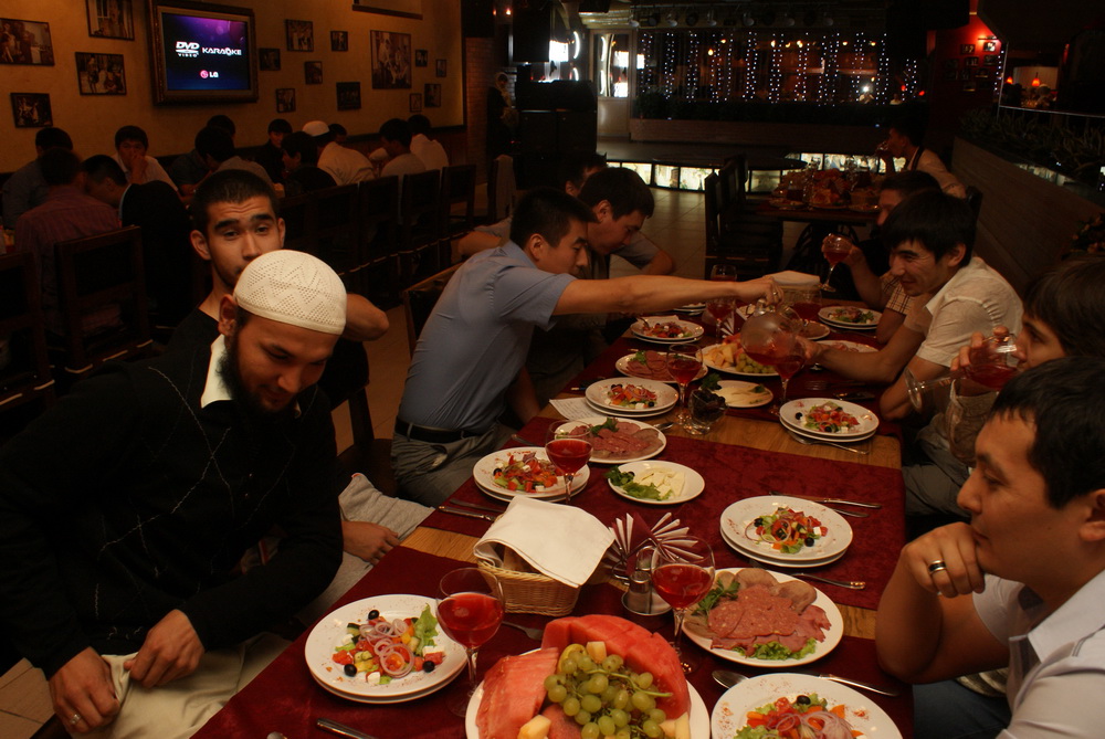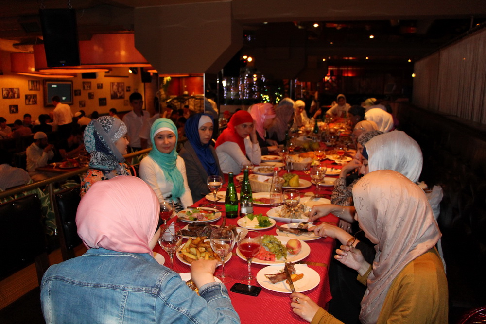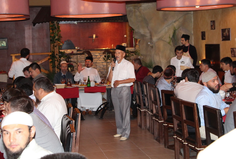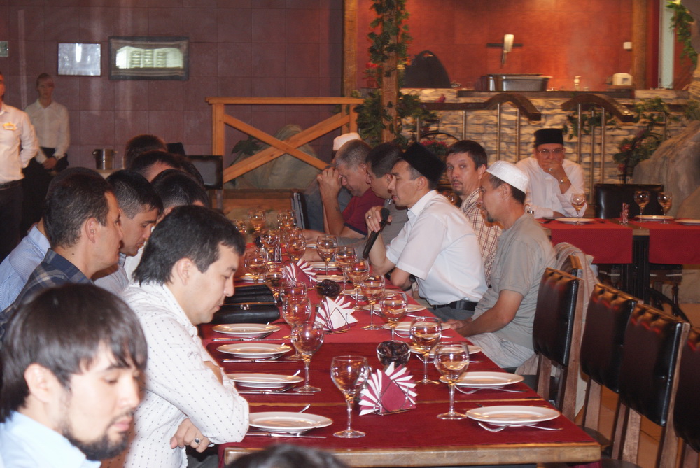 Студенты и имамы из районов области, семейные пары и молодые бизнесмены, спортсмены и врачи, общественные деятели и руководители организации и ведомств, объединенные одним мотивом разделить вечернюю трапезу в кругу соплеменников и единоверцев, встретились в одном из ресторанов города в 21 день Благословенного месяца.