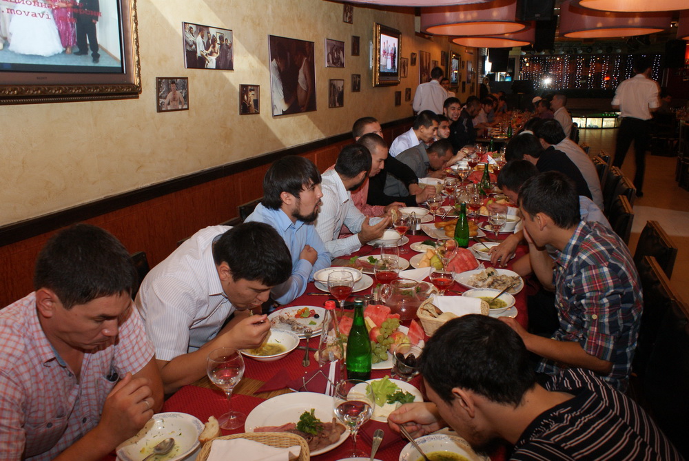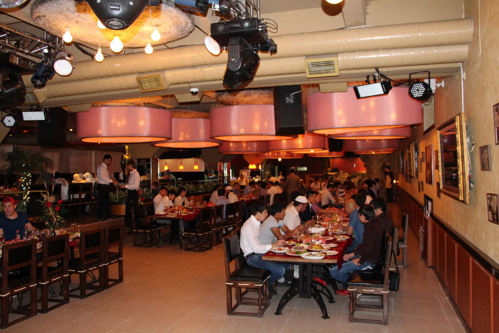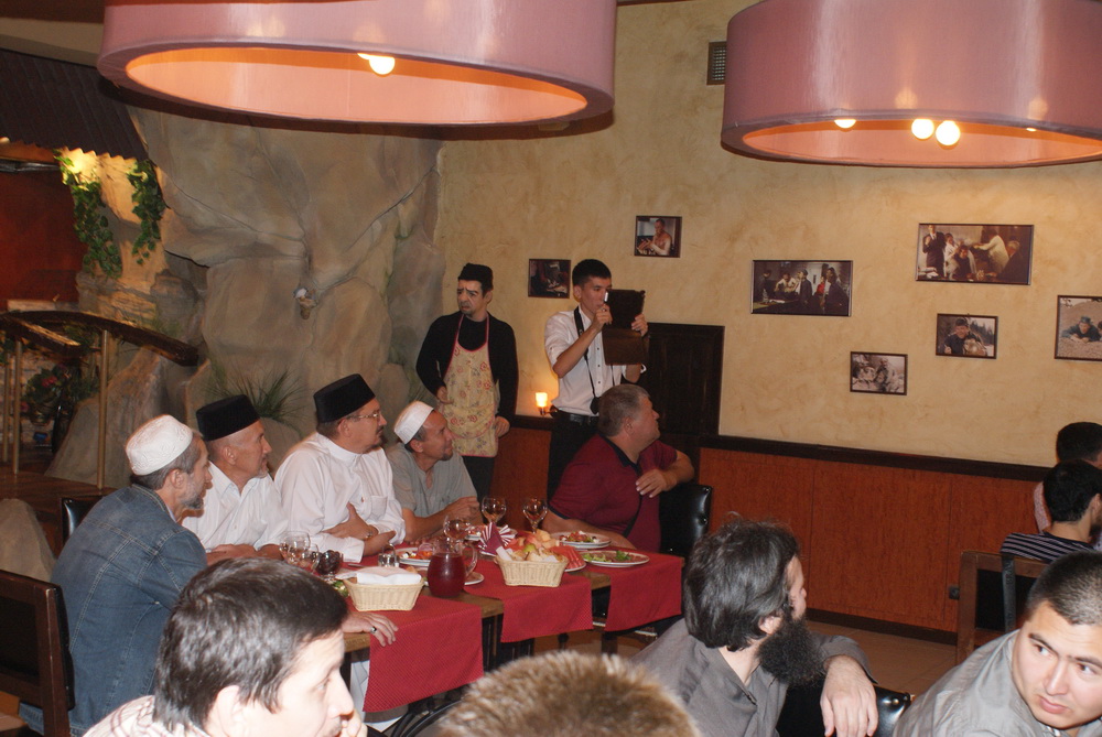 В понедельник вечером перед рестораном «Джентельмены удачи» непривычно многолюдно. Более сотни молодых людей собрались сами и пригласили гостей, чтобы совместно провести праздничный ужин по окончании очередного дня Священного поста.