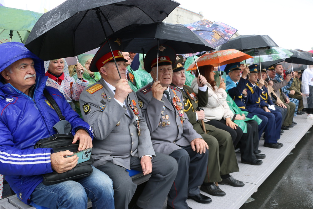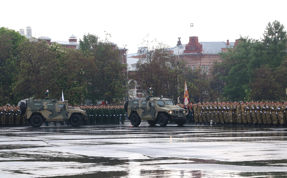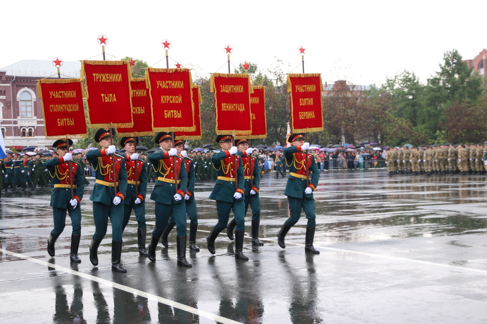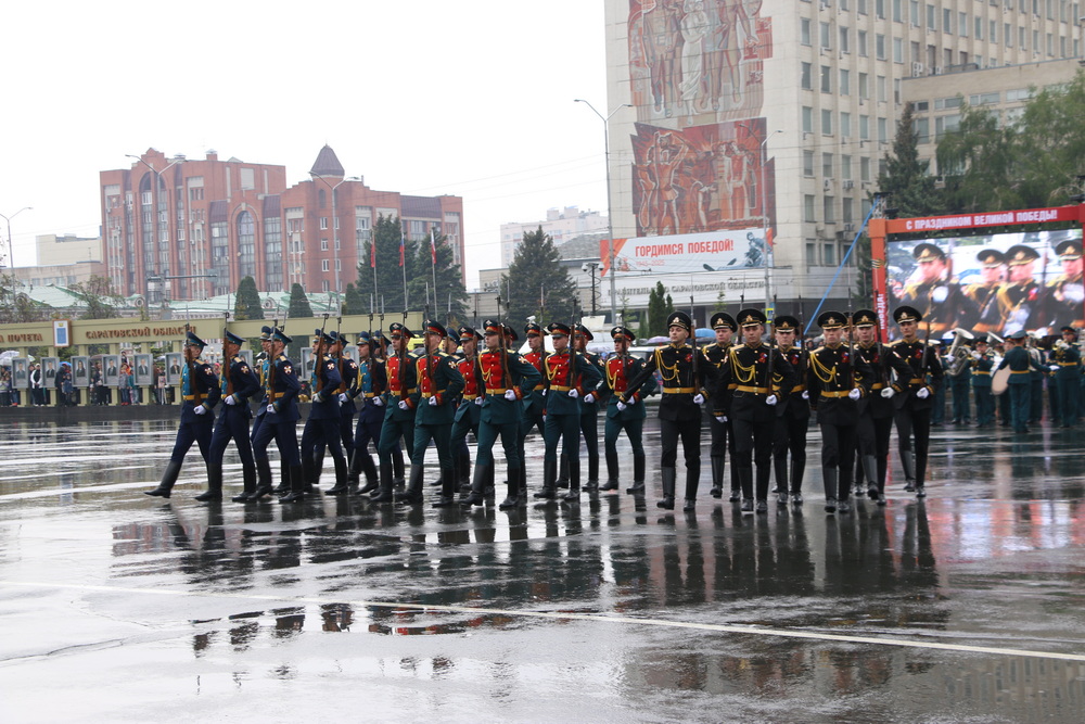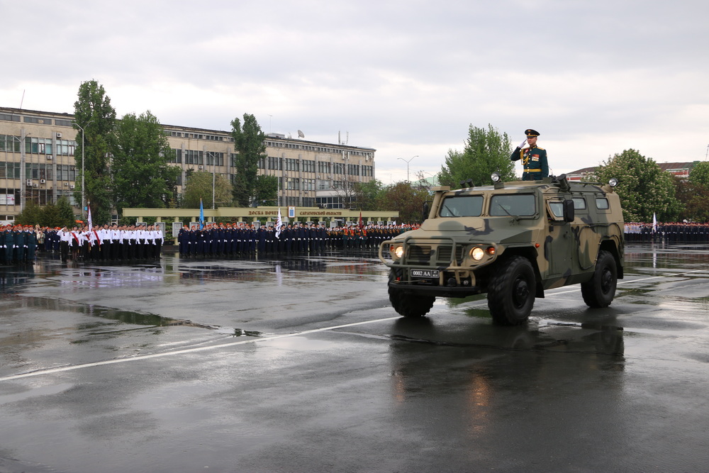 Принимал торжественное прохождение парадных расчетов начальник Саратовского гарнизона, полковник Роман Дорохов, командовал торжественным прохождением заместитель начальника Саратовского гарнизона полковник Евгений Чалый.
