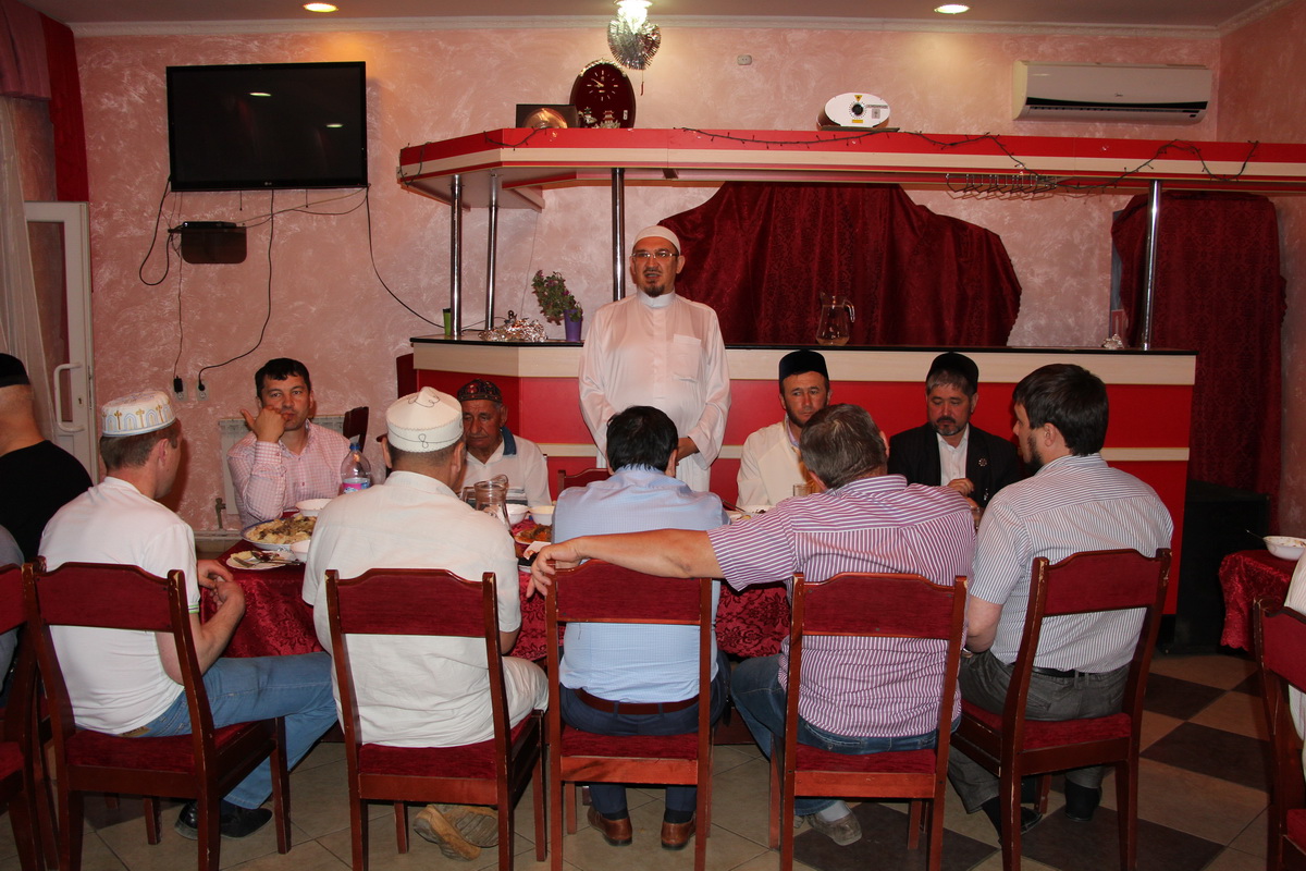 Более подробно о проходящем Благословенном месяце муфтий Саратовской области рассказал на коллективном ифтаре в кафе, куда все постящиеся отправились после Магриб-намаза. Мукаддас-хазрат назвал Рамадан месяцем доброты и взаимопомощи, шансом изменить себя и окружающих. Для того, чтобы прочувствовать особенность этого времени следует больше усердствовать и благодарить Аллаха, пояснил муфтий.