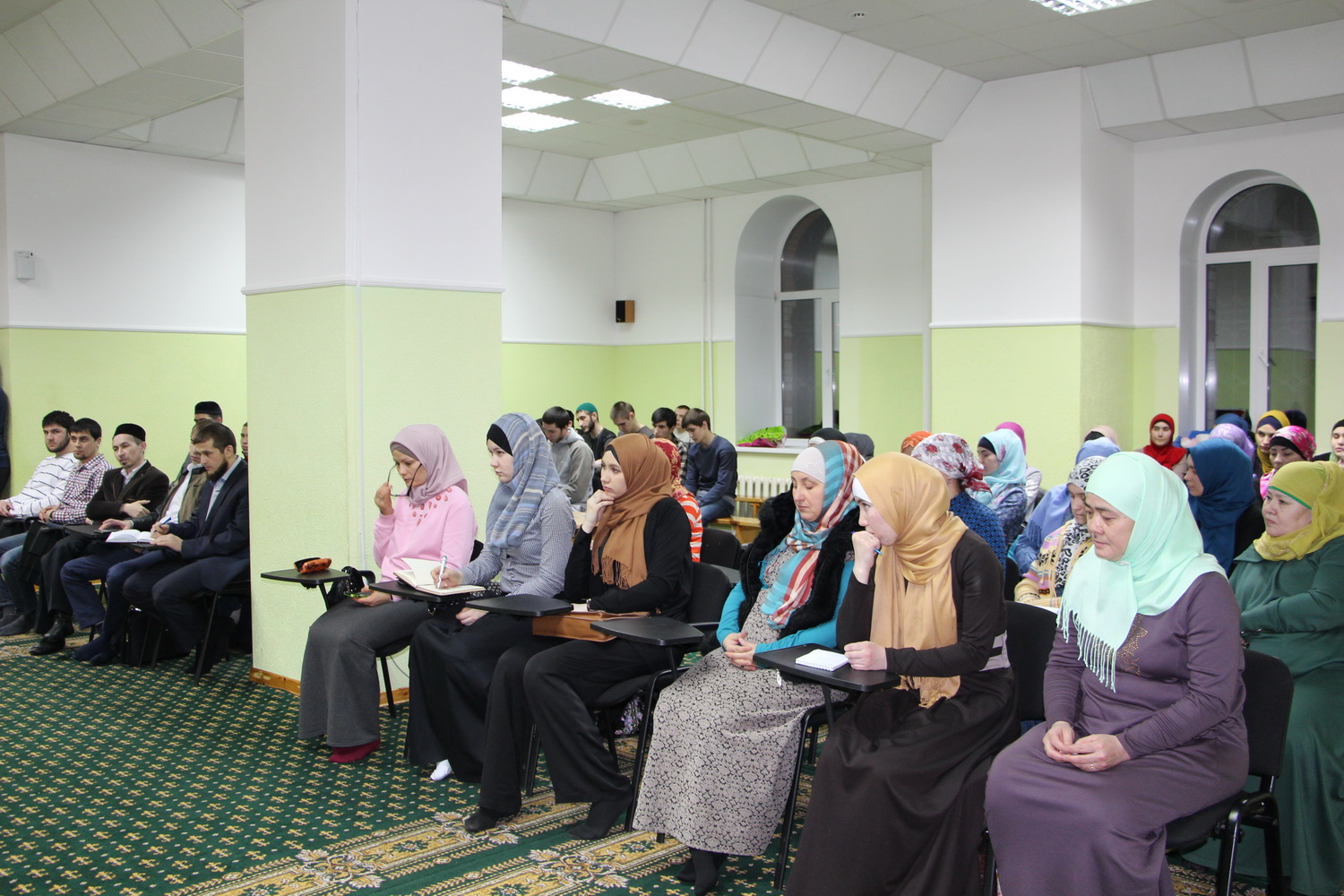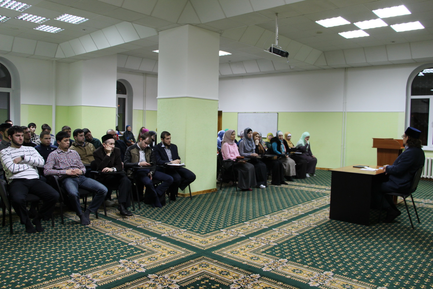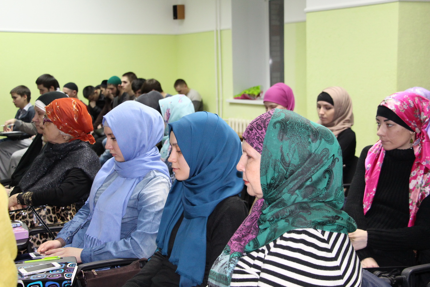 В зале собралось около 60 мусульман. Муфтий напомнил им о важности следованию истинным ценностям Ислама, сравнив нашу веру с прочным цементом, который способен укрепить общину.