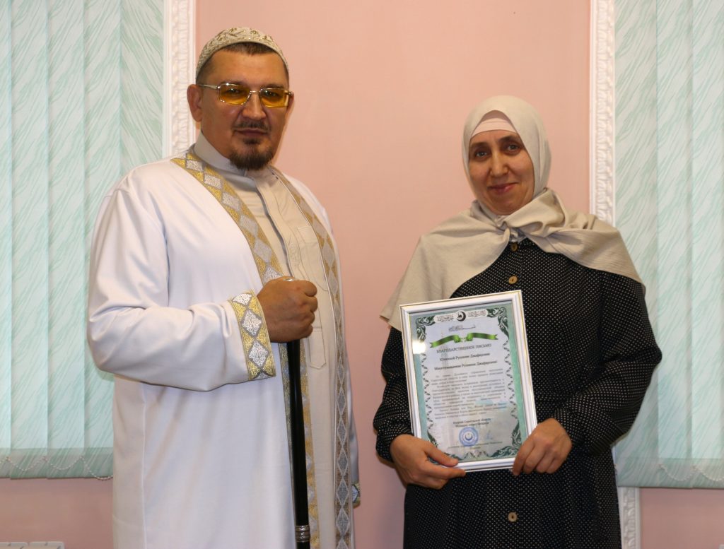 Также муфтий Саратовской области выразил благодарность преподавателю воскресной школы при Балашовской мечети Рушание-ханум Юнкиной за большой труд на благо Ислама и мусульман.