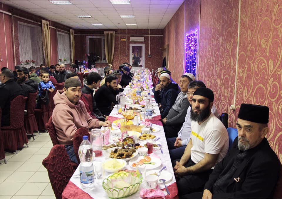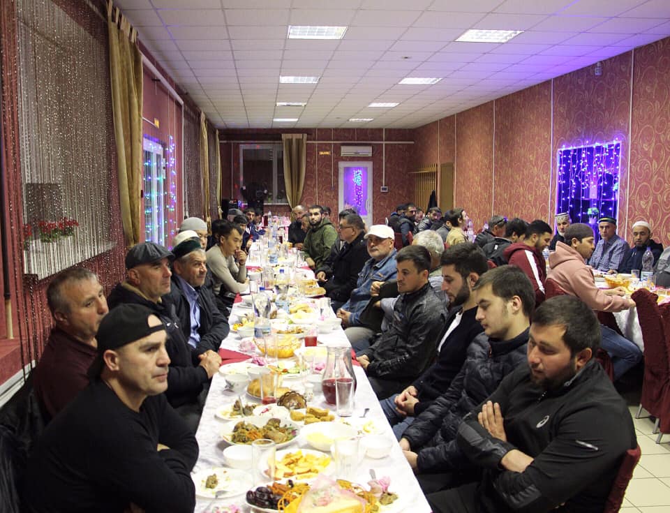 После того, как мусульмане прервали дневную уразу и совершили Магриб-намаз, они направились в местное кафе на коллективный ифтар.