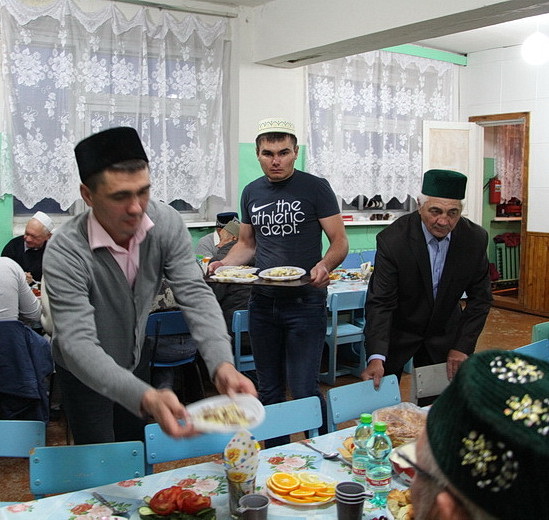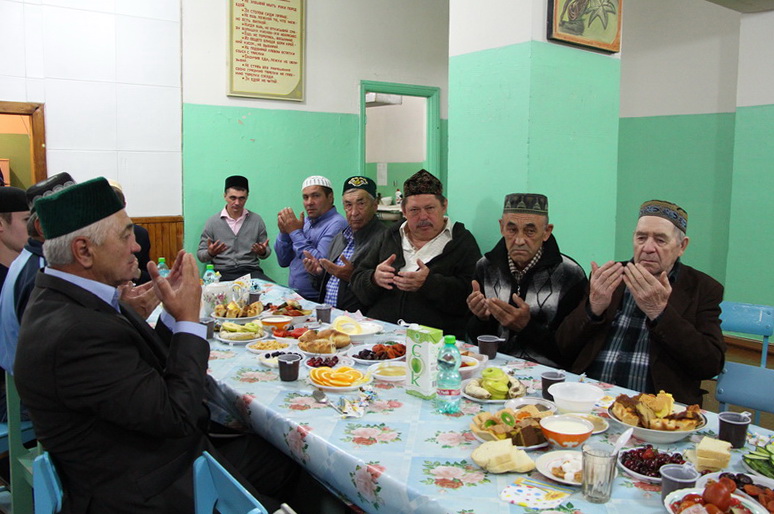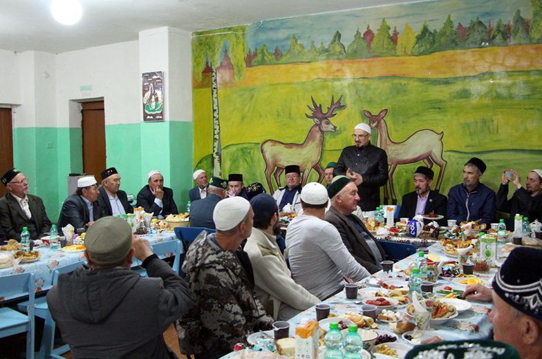 Затем всех постящихся пригласили в столовую местной школы. За праздничным ужином-разговением верующие не только попробовали блюда татарской кухни, но и общались между собой.