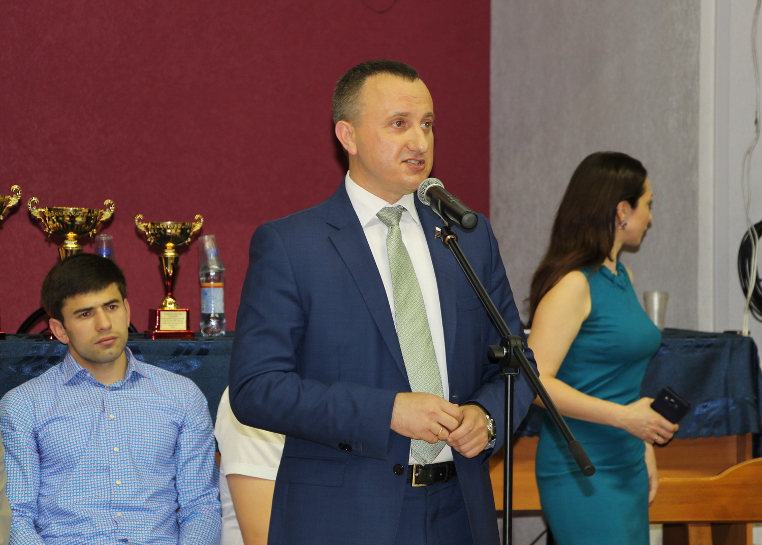 В ходе торжественного мероприятия были вручены грамоты и медали ветеранам. Также подарочный сертификат на новый борцовский ковер получил директор областной детско-юношеской спортивной школы по спортивным единоборствам имени С.Р. Ахмерова Ренат Батраев.