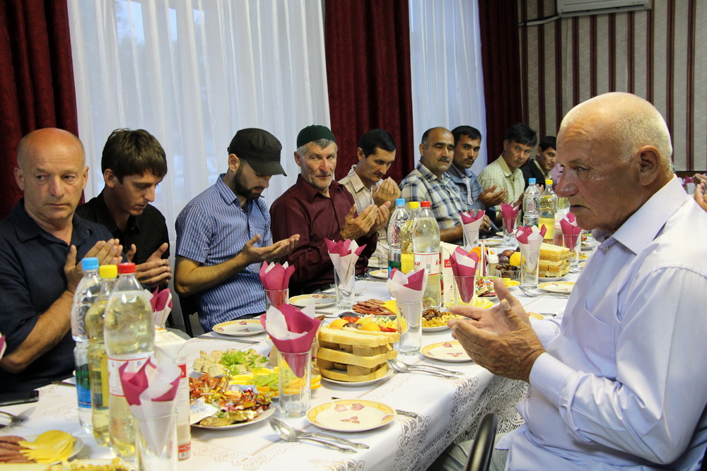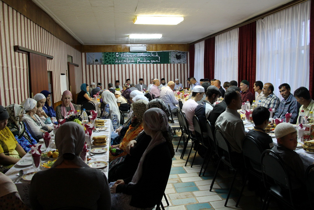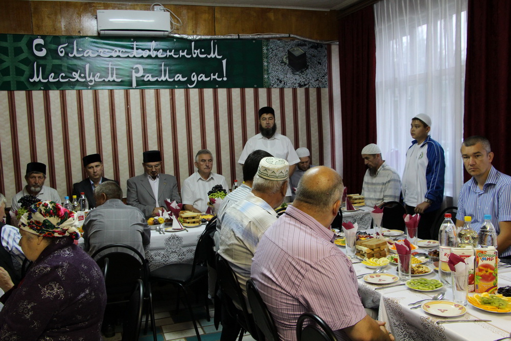 До захода солнца постящиеся собрались в местном кафе, где читали аяты Священного Корана. Затем со словами приветствия к ним обратился имам-мухтасиб Балашовского района Ильяс-хазрат Юнкин, который пожелал, чтобы Всевышний принял Пост и поклонения в месяц Рамадан.