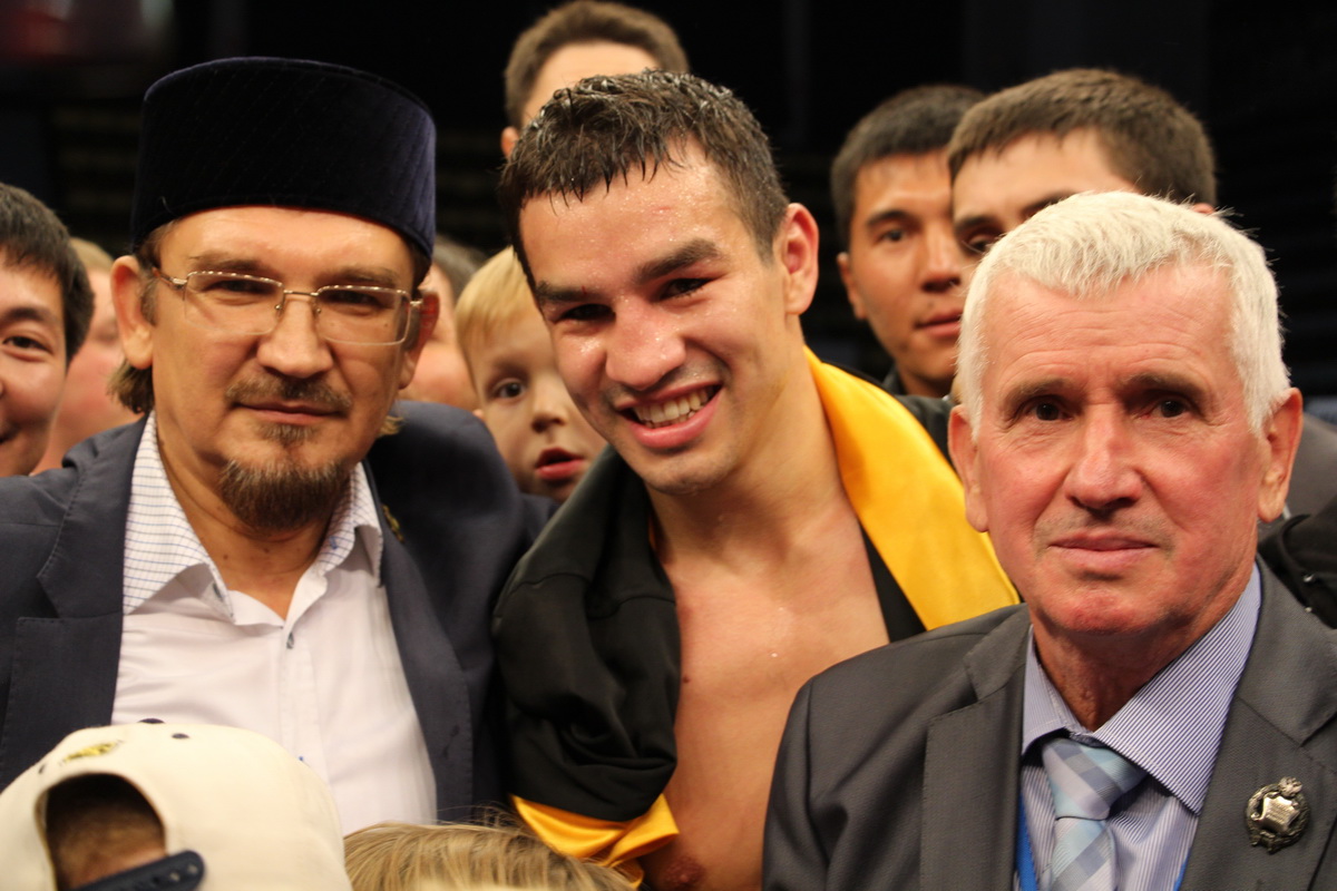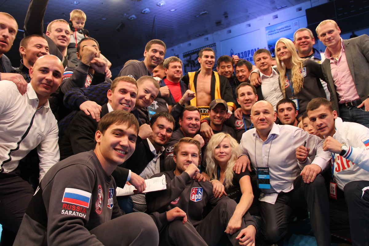 Радостные друзья, родственники и болельщики Артема не могли сдержать своих эмоций и прямо на ринге стали подбрасывать вверх именитого спортсмена и фотографироваться с ним.