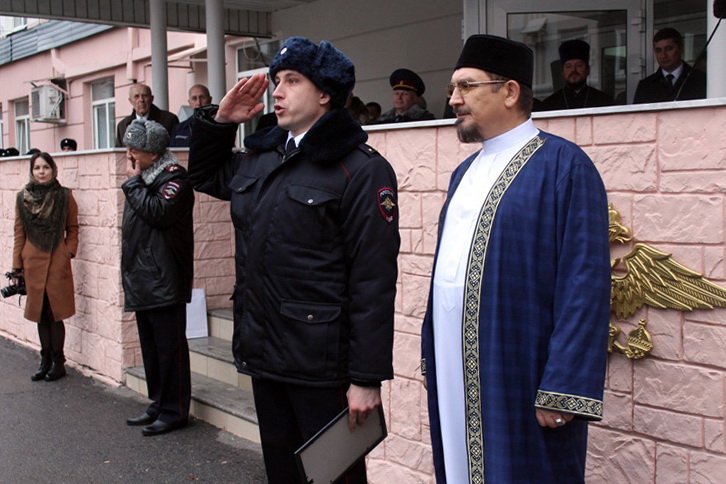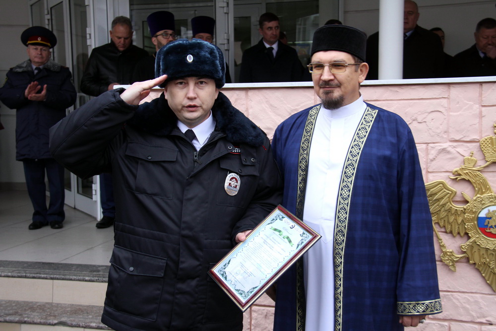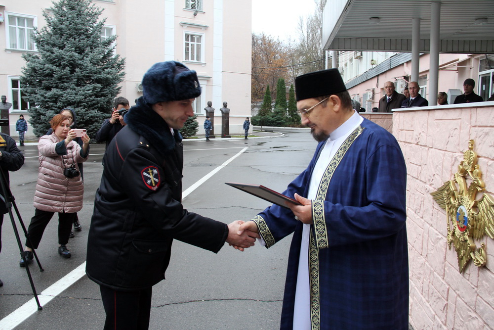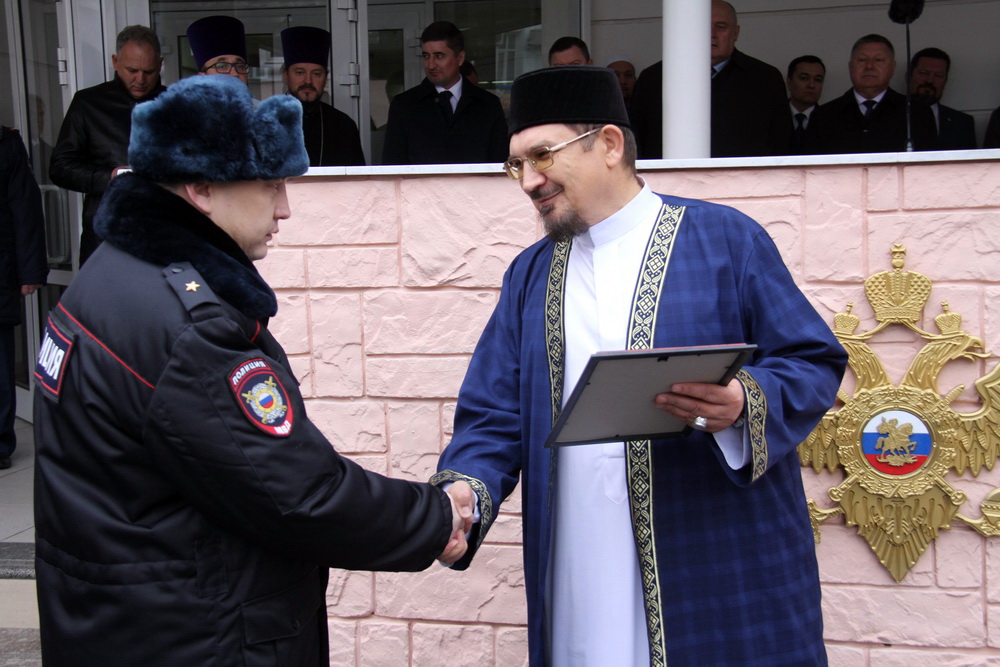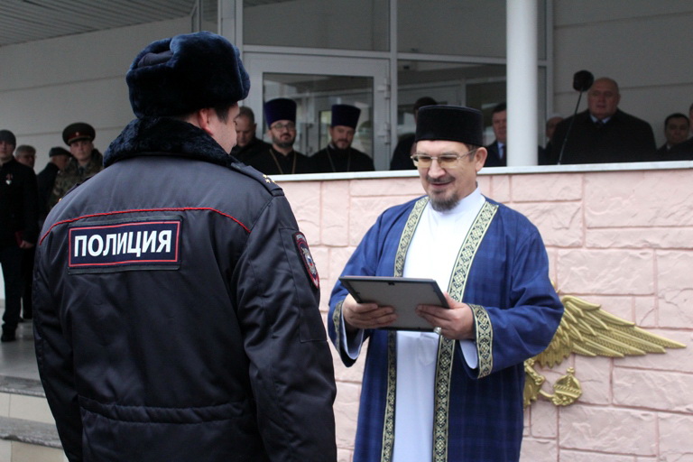 В своем выступлении муфтий Саратовской области Мукаддас-хазрат Бибарсов отметил, что на сотрудников полиции возложена ответственность за сохранение безопасности в обществе и защиту граждан от преступников.
