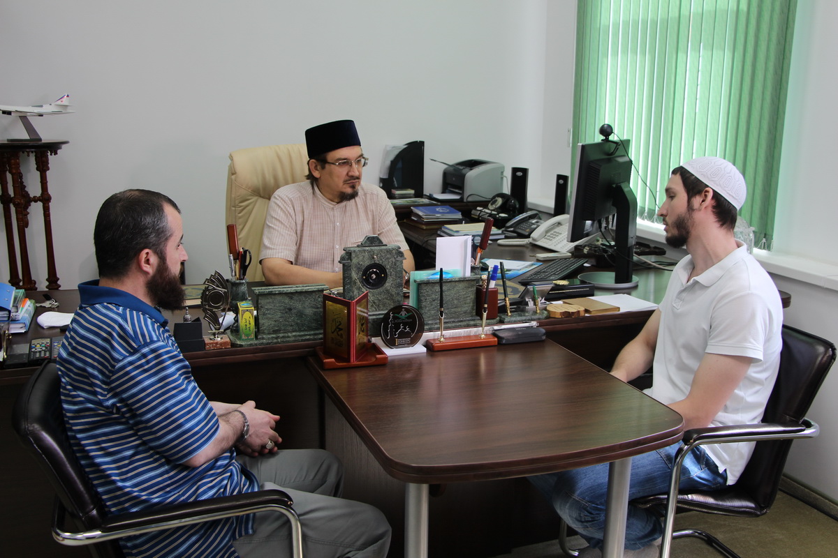 29 июля в Исламском комплексе г.Саратова прошла встреча сопредседателя Совета муфтиев России, главы Духовного управления мусульман Саратовской области Мукаддаса-хазрата Бибарсова с участником Международного конкурса чтецов Корана в Иордании Тагиром Юсуповым и преподавателем коранических групп Ильясом-хазратом Ильясовым.