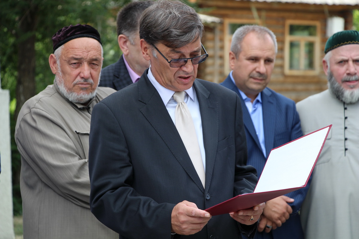 В ходе митинга в честь открытия национально-культурного комплекса вайнахского народа поздравления в адрес собравшихся зачитали заместитель министра-председателя комитета общественных связей и национальной политики Саратовской области Сергей Калюжный и директор департамента национальной политики Министерства по национальной политике, внешним связям, печати и информации Чеченской Республики Ильман Вахидов.
