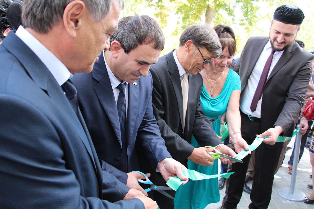 После чтения аятов Священного Корана в исполнении имама-хатыба Соборной мечети г.Саратова Фаниля-хазрата Бибарсова почетные гости перерезали зеленую ленту.