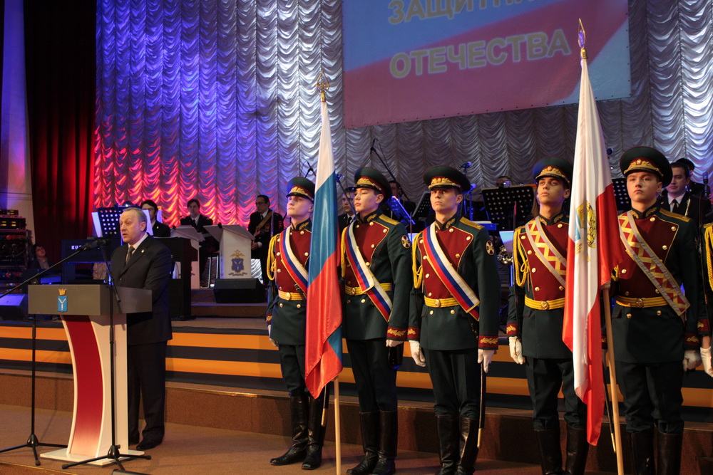 Губернатор, выступая перед участниками торжества с приветственным словом, подчеркнул, что наша страна через всю свою историю проходит подвиг защитника Отечества. Валерий Радаев также отметил, что Саратовской области есть чем гордиться. «На протяжении многих веков наши земляки принимали участие во многих сражениях, отдавая свою жизнь ради защиты Отечества. В годы Великой Отечественной войны более 680 тысяч жителей Саратовской области ушли на фронт, а Саратов стал прифронтовым городом, работавшим на победу. Здесь ковались военные кадры для действующей армии, промышленность обеспечивала военной техникой и вооружением все фронты, саратовские медики возвращали в строй раненых солдат и офицеров», — сказал глава региона.