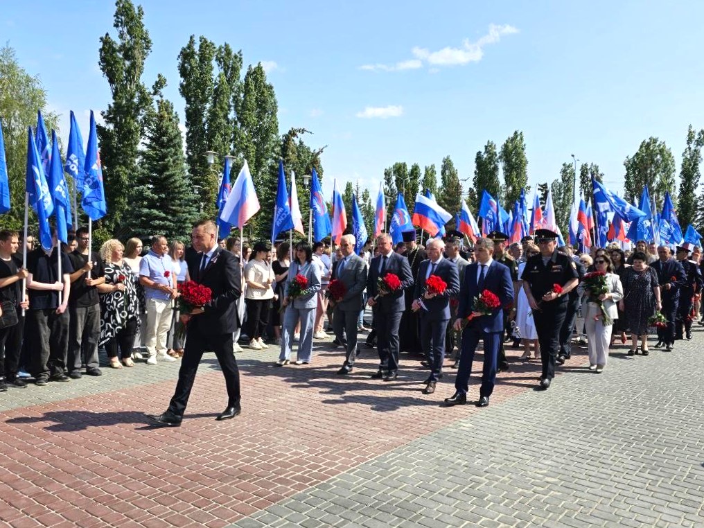 Роман Викторович вместе с представителями общественности, жителями и гостями города возложил цветы к Вечному огню и монументу «Землякам, погибшим в локальных войнах».
